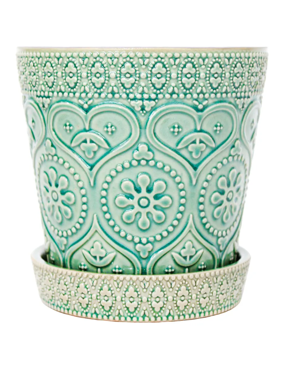 Maceta Turquesa con Grabado Texturizado