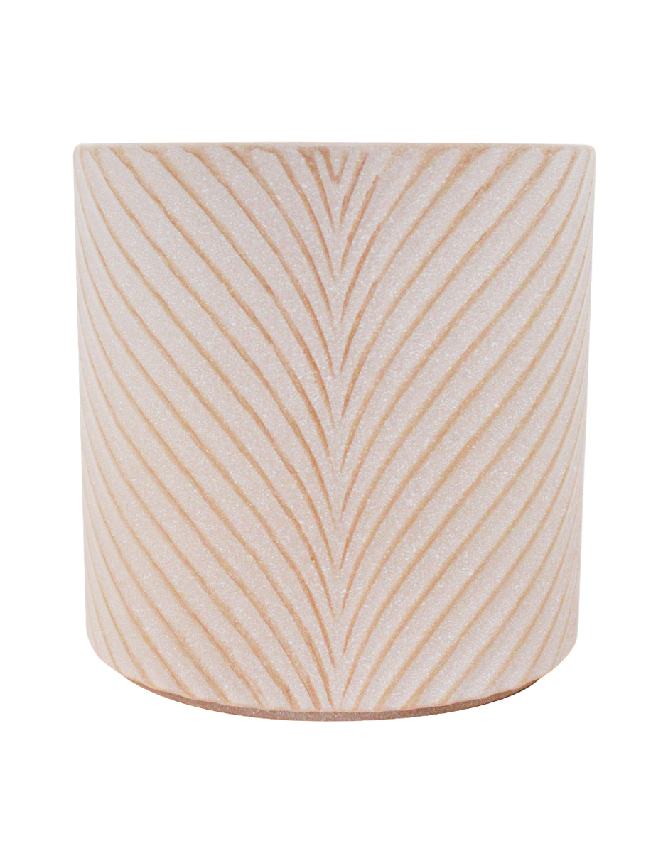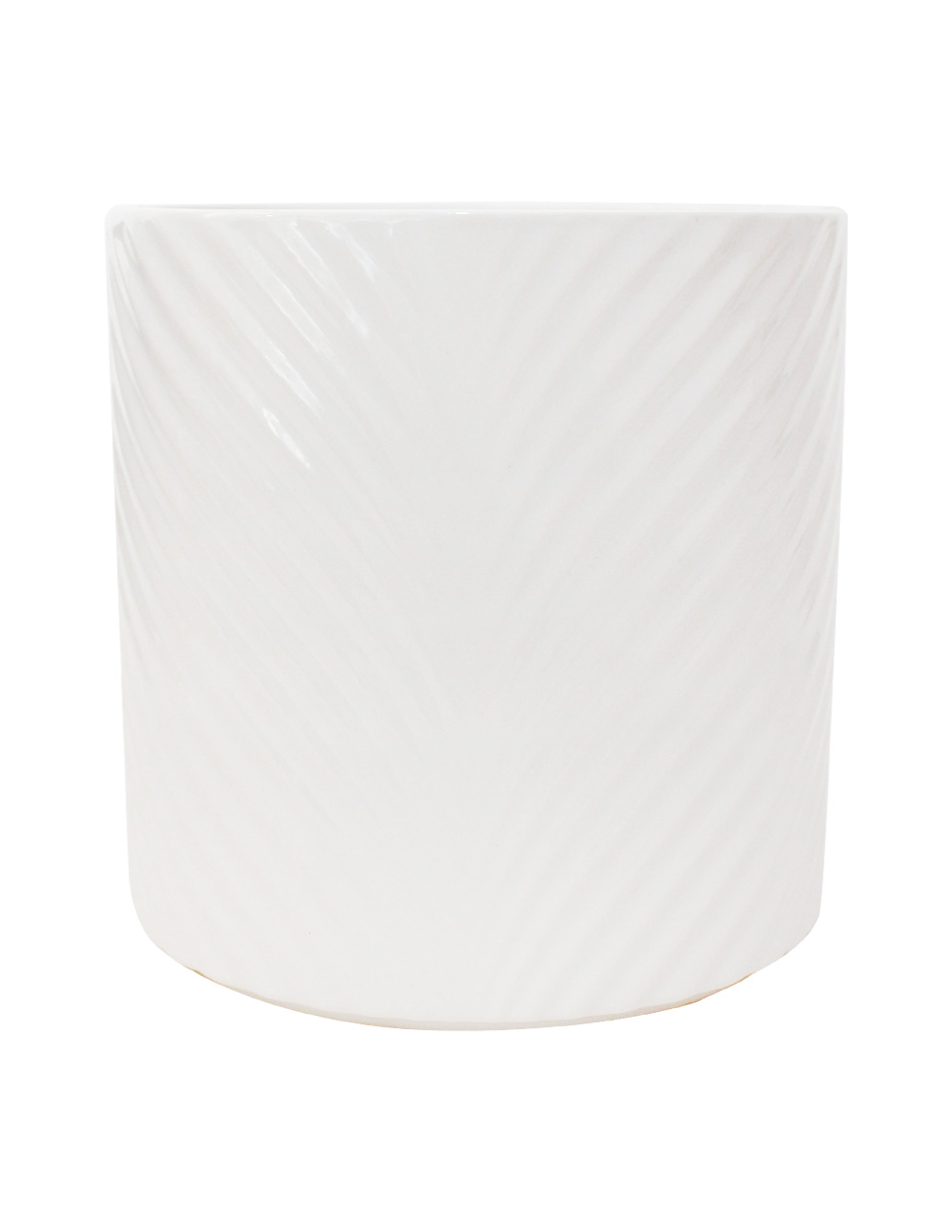 Maceta de Cerámica Ranurada Blanca con Ondas