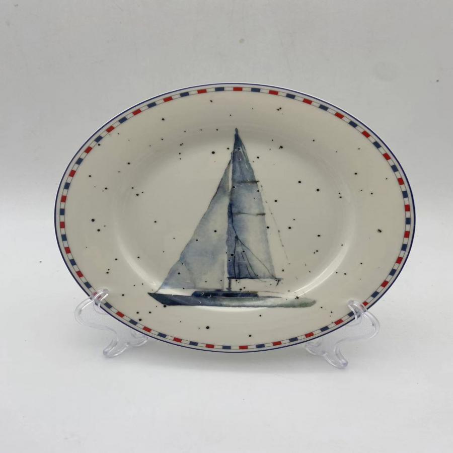 Plato de Porcelana Blanco y Negro con Orilla Dorada