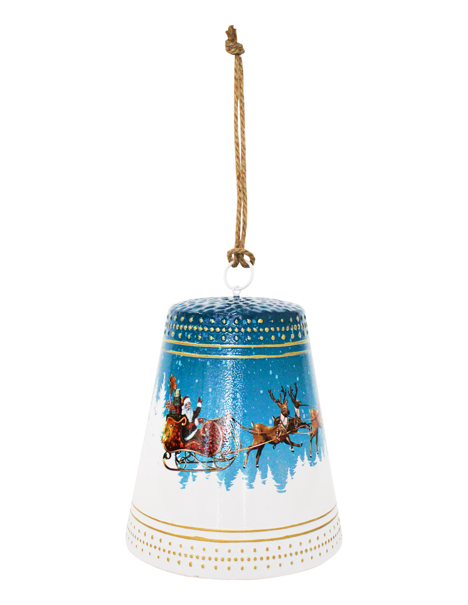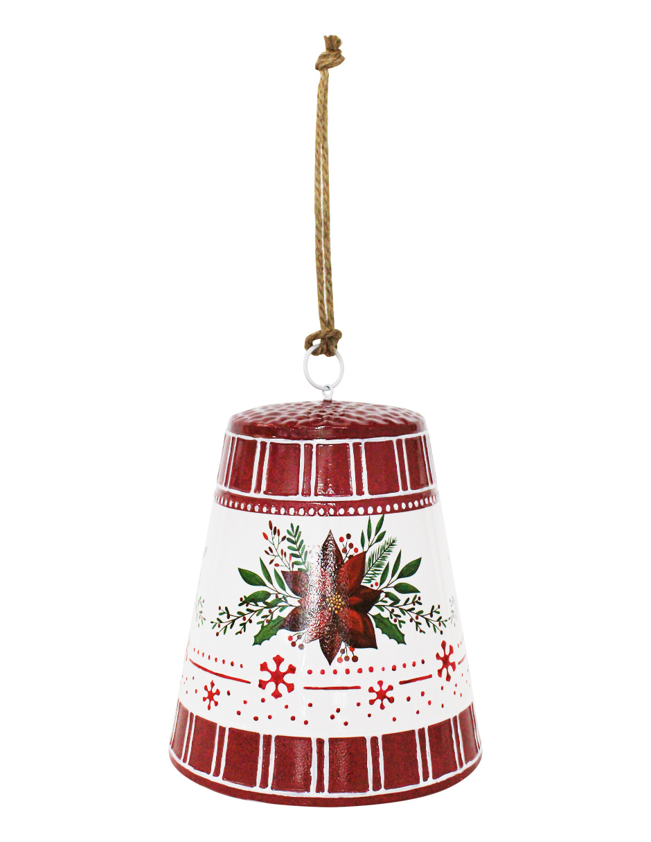 Una campana de metal verde con un diseño clásico a rayas. Es la pieza perfecta para añadir un toque de elegancia tradicional a tu árbol de Navidad o a una guirnalda. Su brillo y diseño festivo llenarán cualquier espacio de alegría y un espíritu navideño.