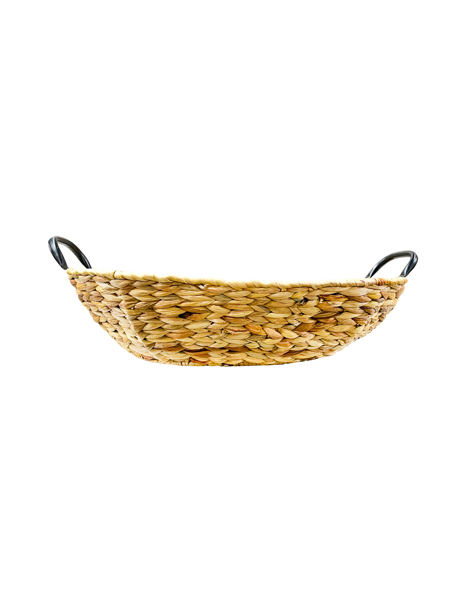 Canasta Ovalada Tejida con Asas de Metal Negro