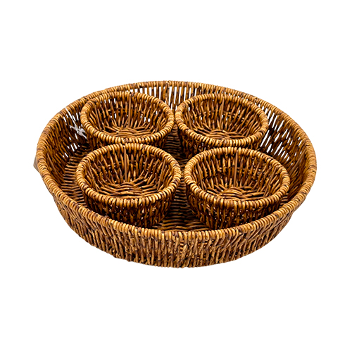 Set de 4 Cestas Redondas con Charola Circular