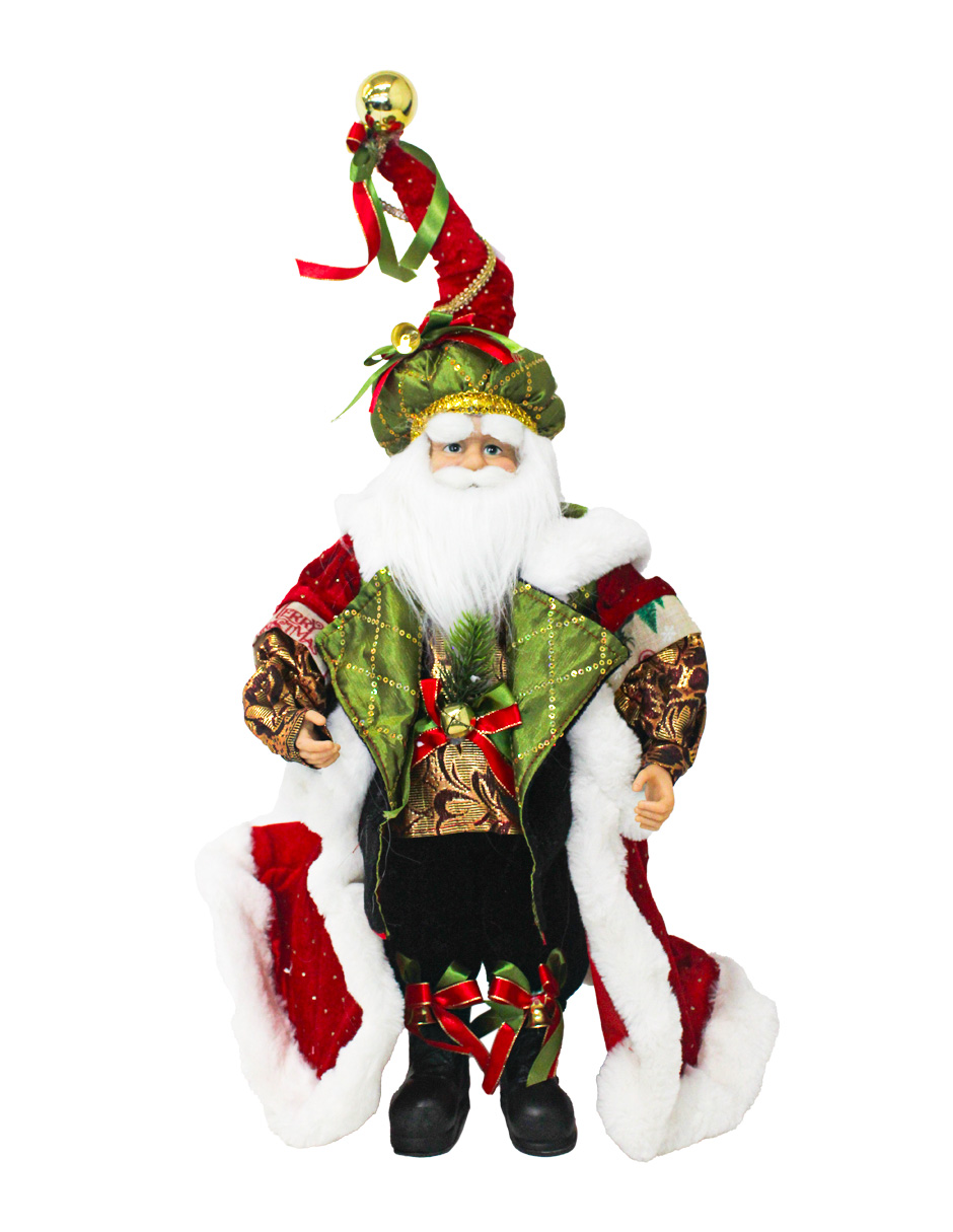 Santa Claus con Abrigo Rojo con Verde y Mangas Doradas
