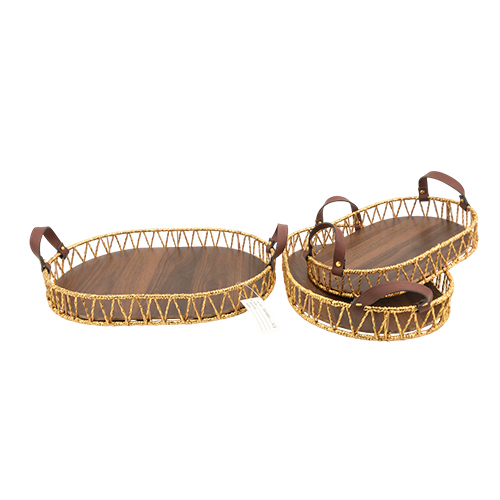 Juego de 3 cestas de madera marron rectangular con asa de 28x36x22cm