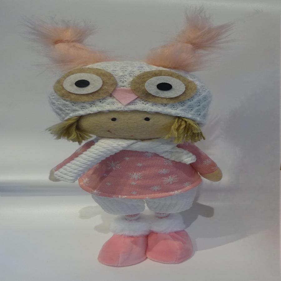Gnomo de tela con traje de colores con orejas de conejo playera rosa de 10x21x43cm