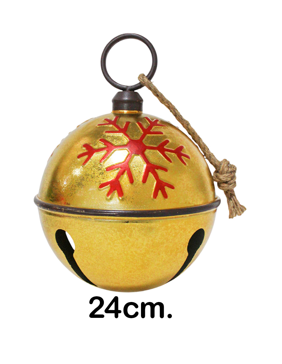 Cascabel Dorado con Copos de Nieve Rojos