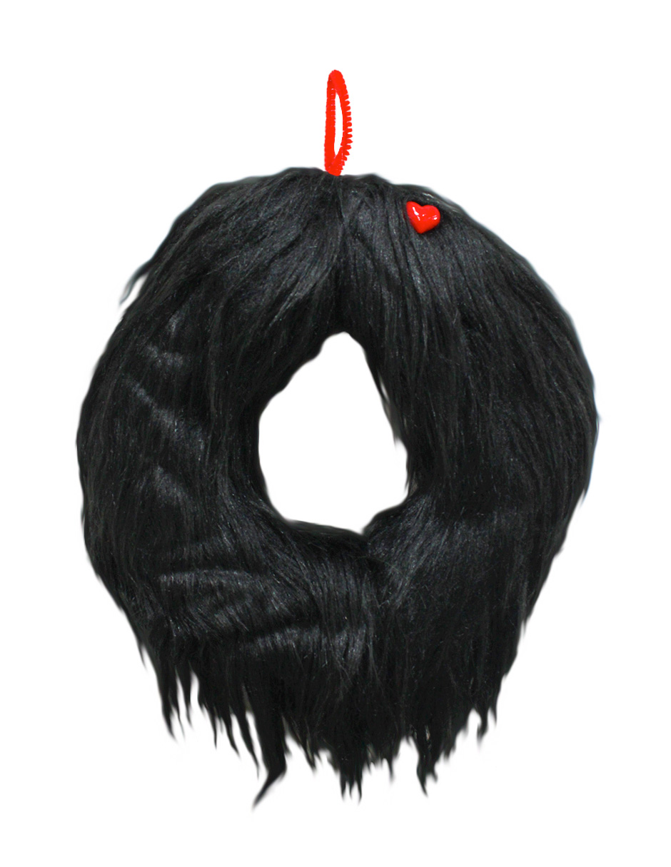 Corona de Peluche Negra con Corazón Rojo