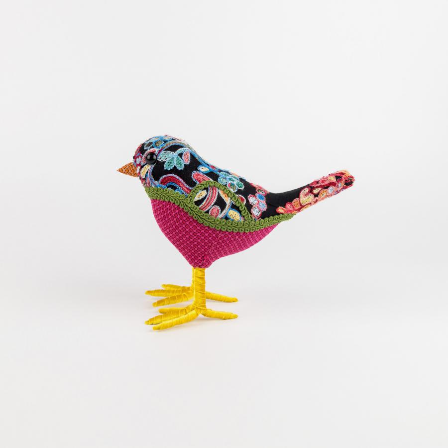 Pato forrado de papel con flores rosa de 17x9x13cm