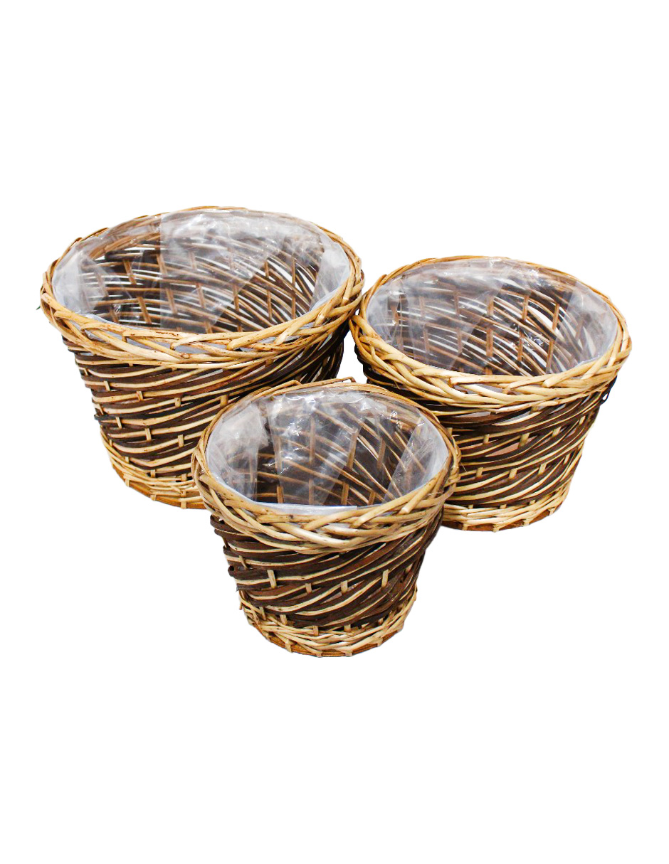 Maceta Redonda de Madera Negra con Líneas Naturales