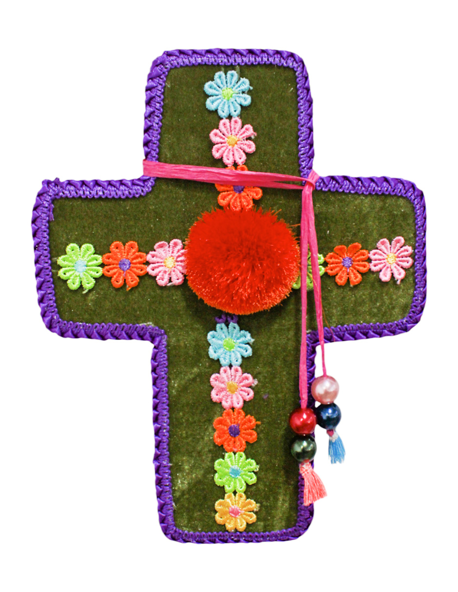 Cruz Decorativa Verde y Flores