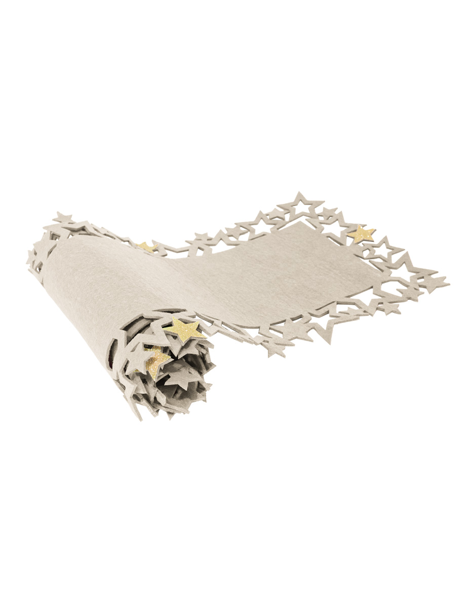 Camino de Mesa de Fieltro Beige con Orilla de Estrellas