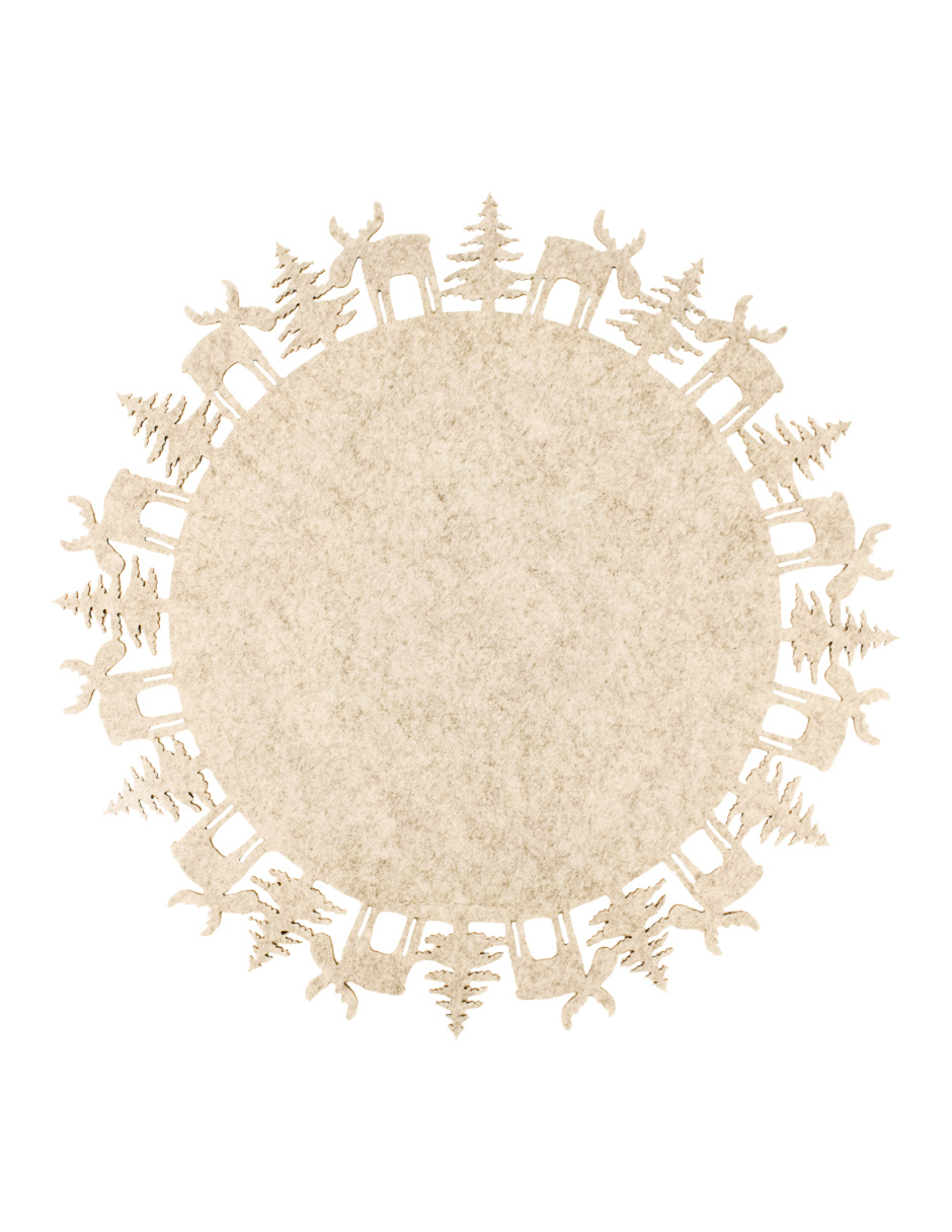 Mantel Beige con Orilla de Ciervos y Pinos Navideños