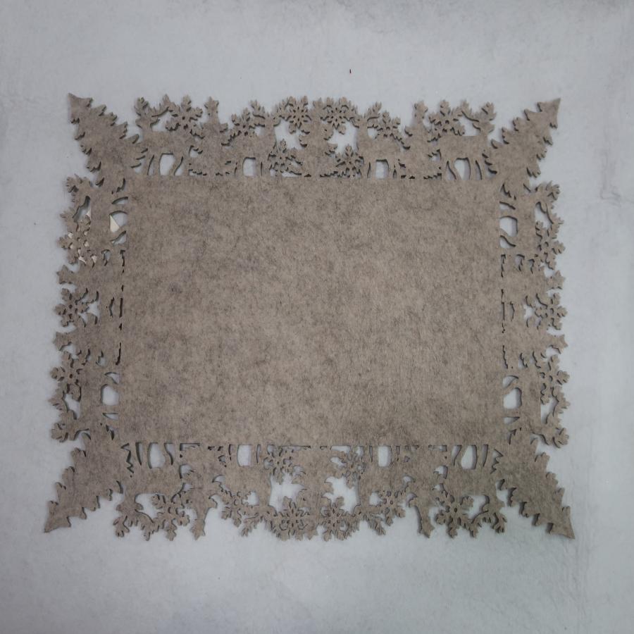 Un moderno mantel de fieltro gris con estrellas perforadas, con medidas de 40x40x0.3 cm. Ideal para proteger tus superficies con un toque de estilo y originalidad.