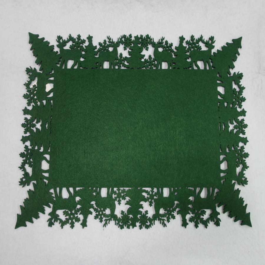 Un festivo mantel de fieltro verde con una orilla de estrellas, con medidas de 40x40x0.3 cm. Ideal para proteger tus superficies con un toque de tradición y color.