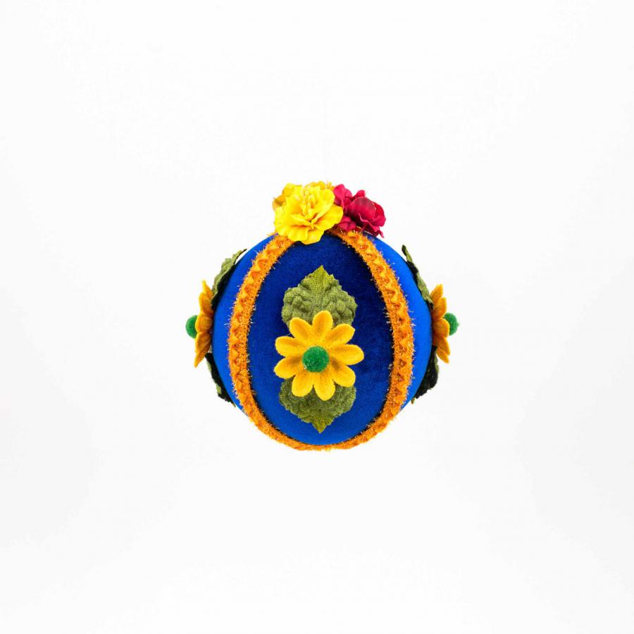 Hongo forrado de papel con flores azul con blanco de 11x11x16cm