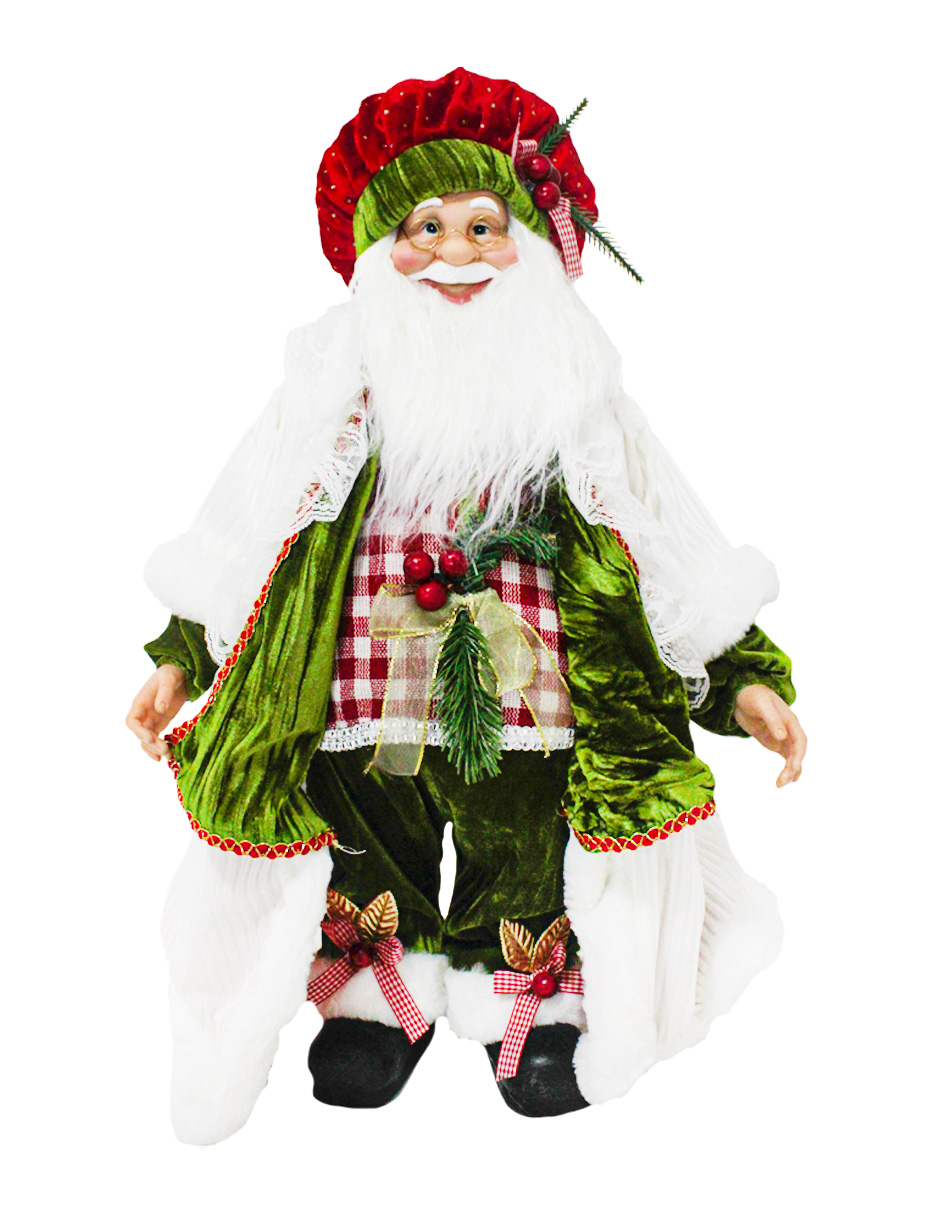 Santa Claus con Abrigo Blanco con Verde y Camisa a Cuadros