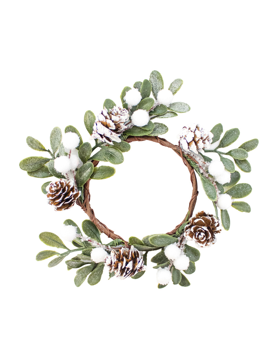 Servilletero con Follaje Verde y Piñas Nevadas