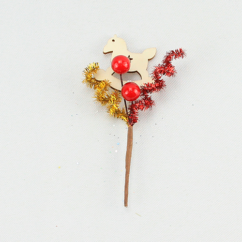 Corsage con Caballito Mecedor y Chenille Dorado con Rojo