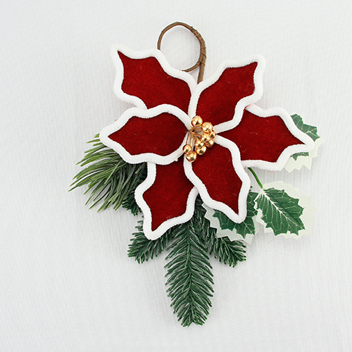 Pick de nochebuena de terciopelo vino/azul con pinza de 20cm