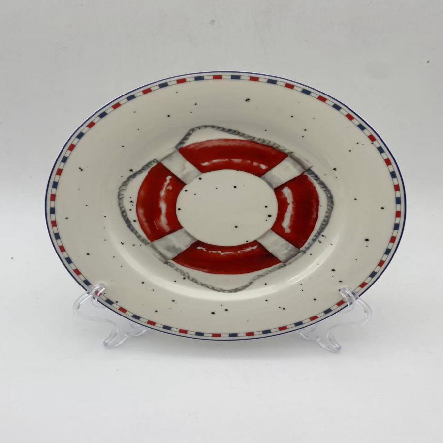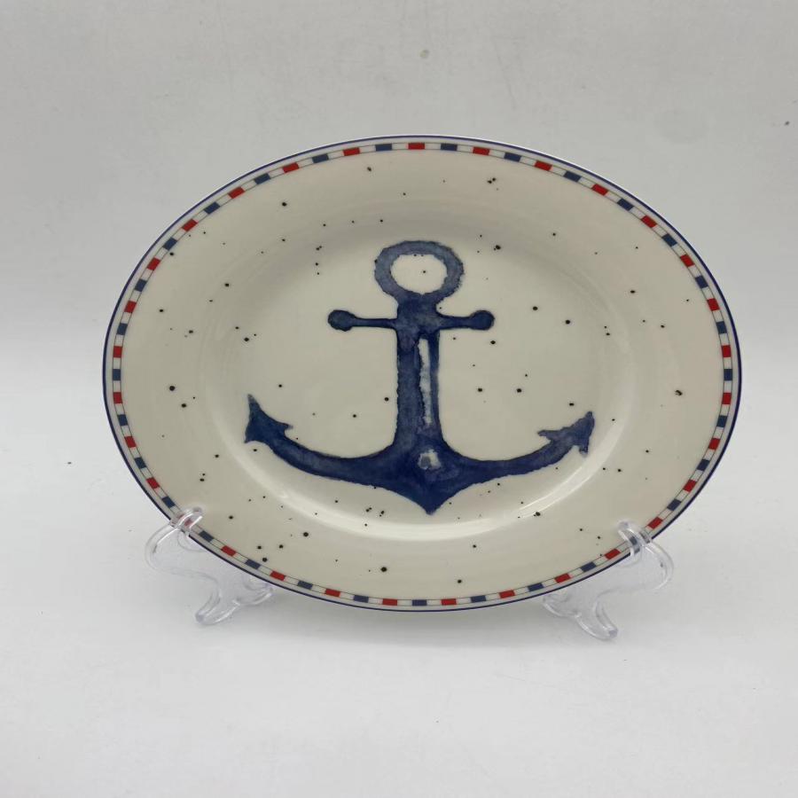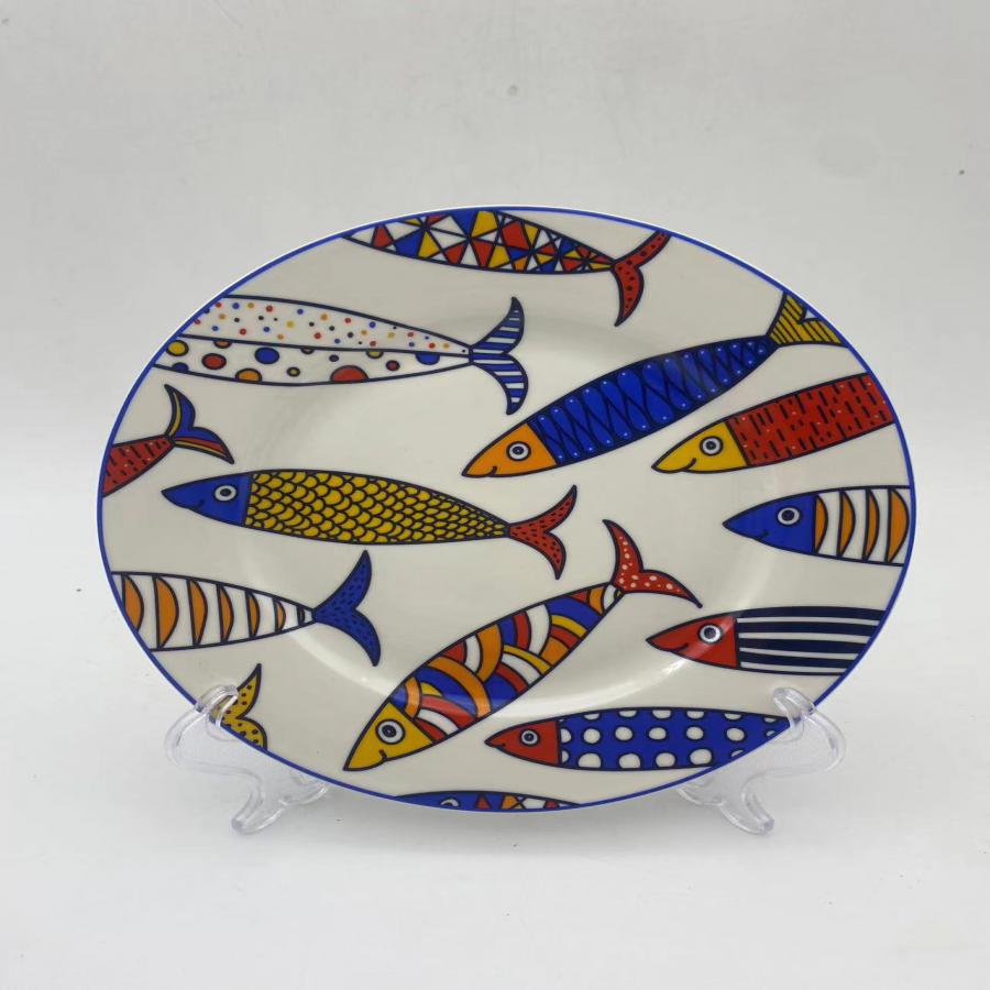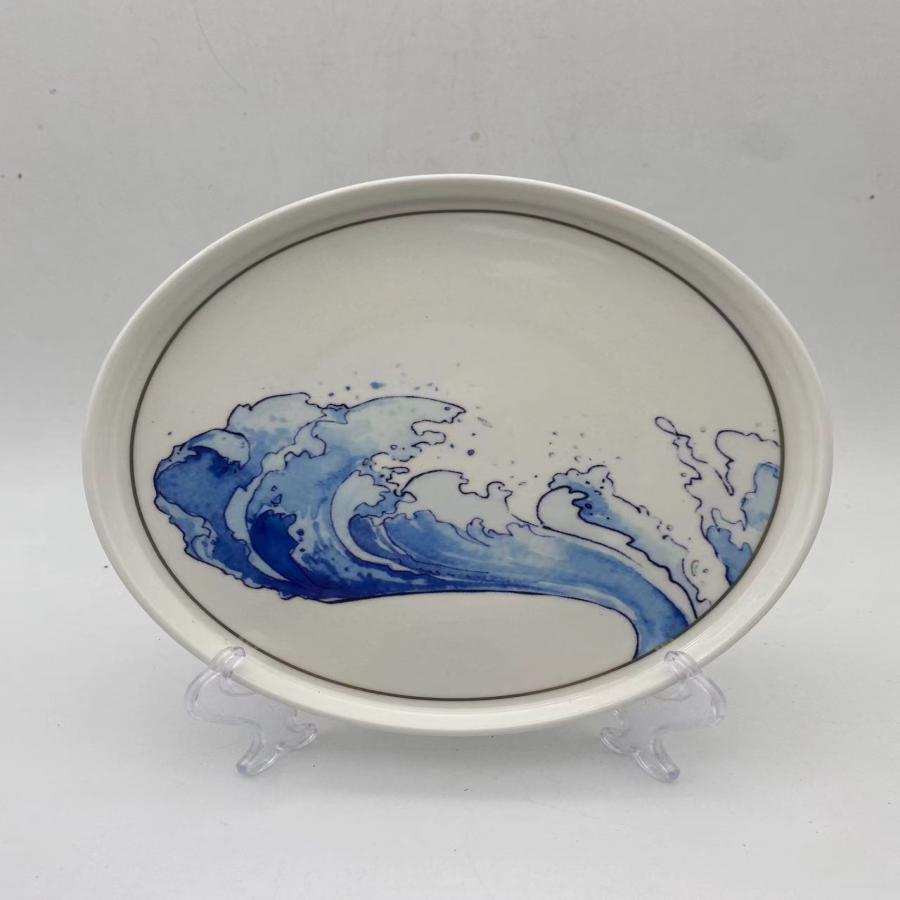 Este plato de porcelana en color café con líneas amarillas es ideal para quienes buscan un toque original y moderno en su mesa. Mide 26.8×26.8×2.9cm.