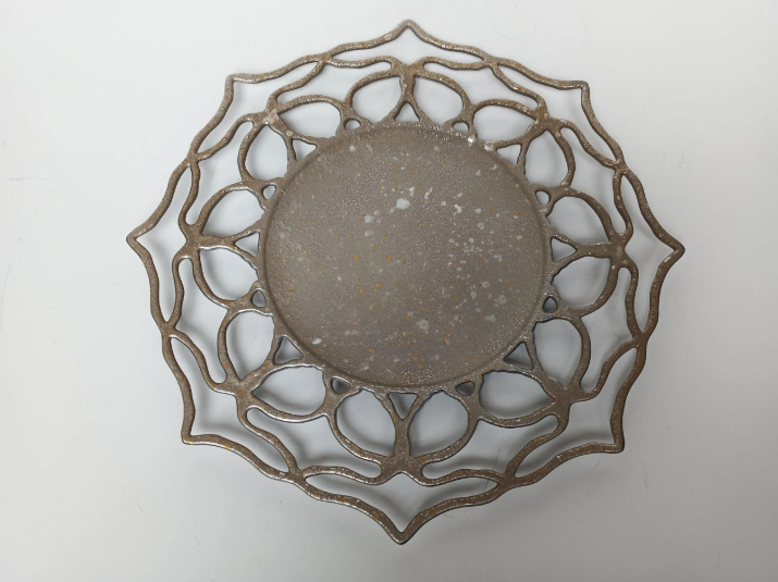 Plato Presentación Beige Plateado Calado Rosa
