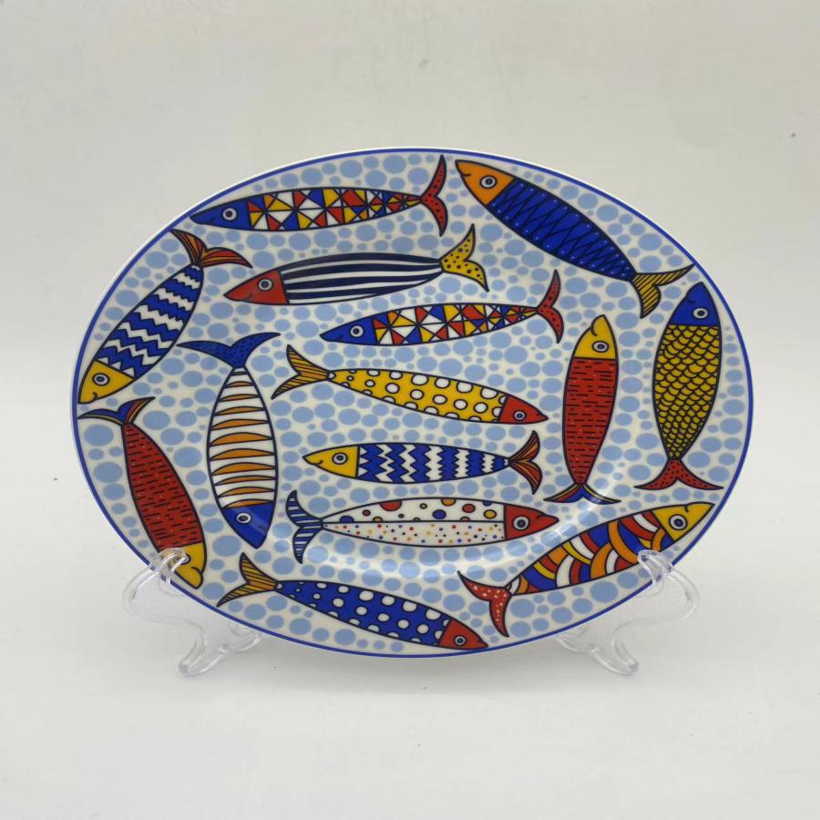 Plato Ovalado de Porcelana con Higo Verde