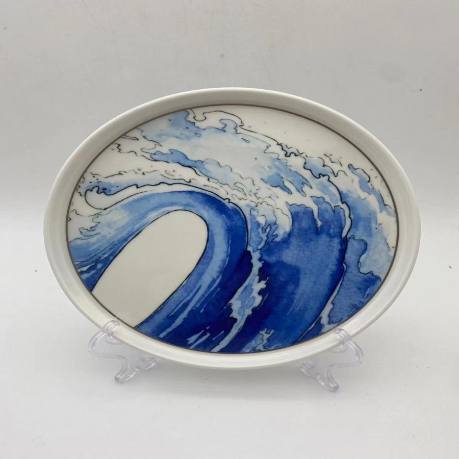 Un plato de porcelana de 26.3×26.3x2cm que combina la belleza natural con un toque de lujo. Su diseño de olas de mar se eleva con un elegante filo dorado, ideal para ocasiones especiales y para quienes buscan un estilo sofisticado y exclusivo.