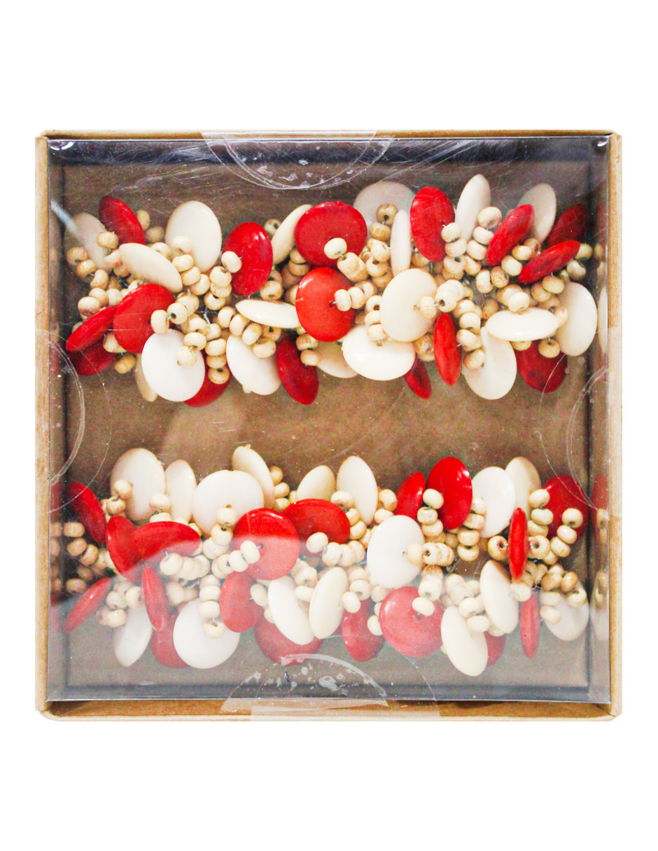 Set de Servilleteros de Cuentas Mixtas Rojas y Natural