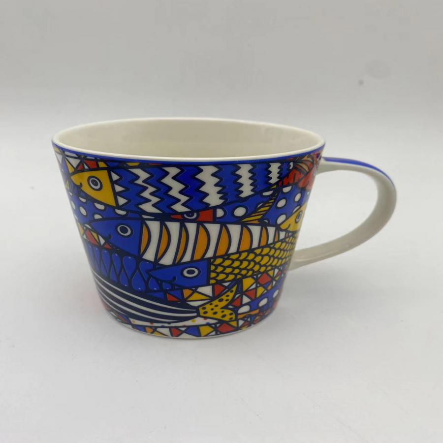 Taza de Porcelana Blanca Diseño Abstracto Naranja