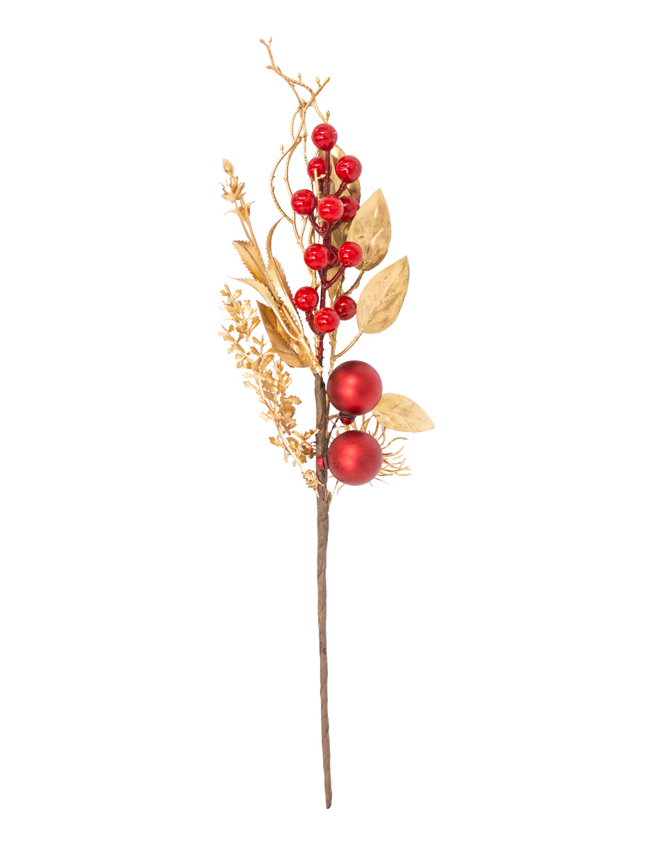 Vara de hojas doradas diamantadas con mariposas de tela roja