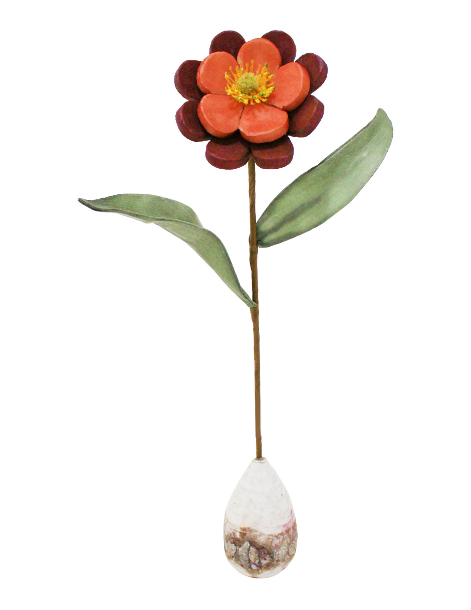 Flor de látex rojo con rosa en base de madera de 10x10x35cm