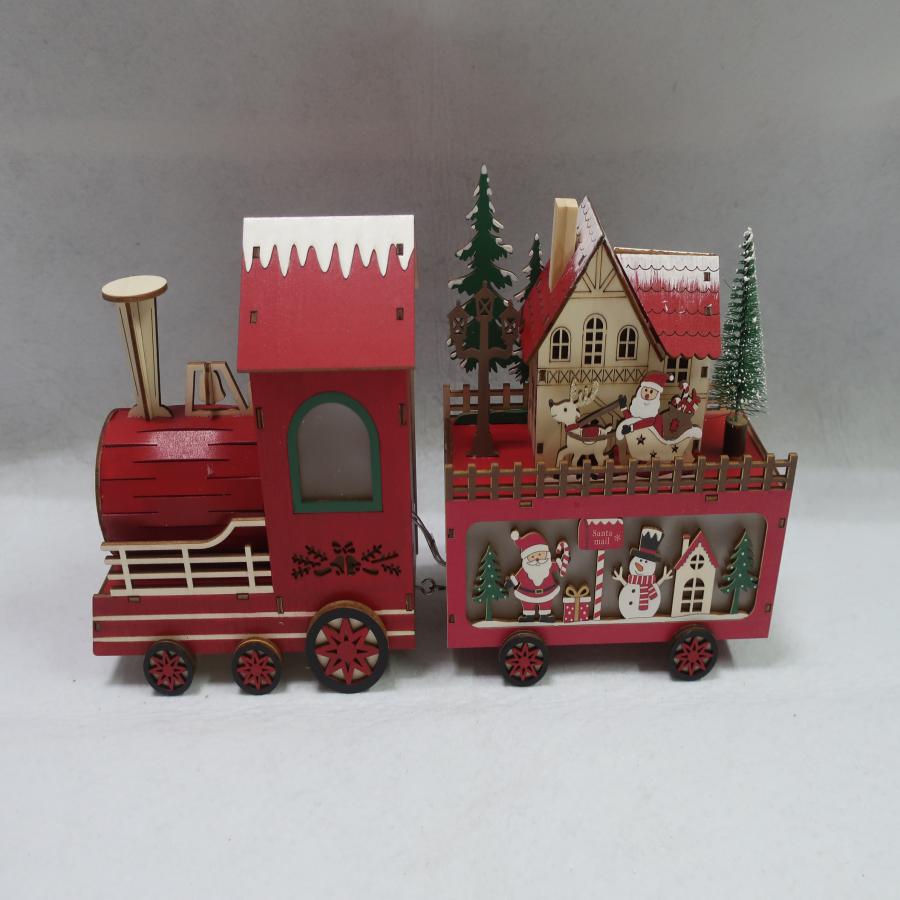 Tren, Madera, Roja, Casa de Santa, Muñeco de Nieve, Luz LED, Navideño
