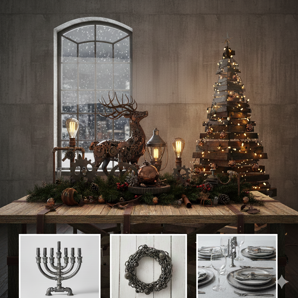La decoración Industrial para Navidad no es fría, es auténtica. Celebra la belleza de los materiales naturales y la elegancia de las líneas simples.