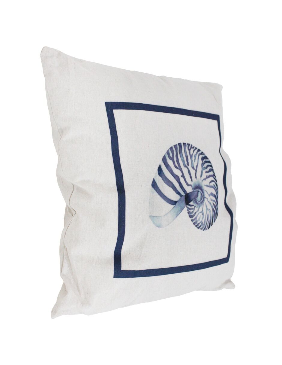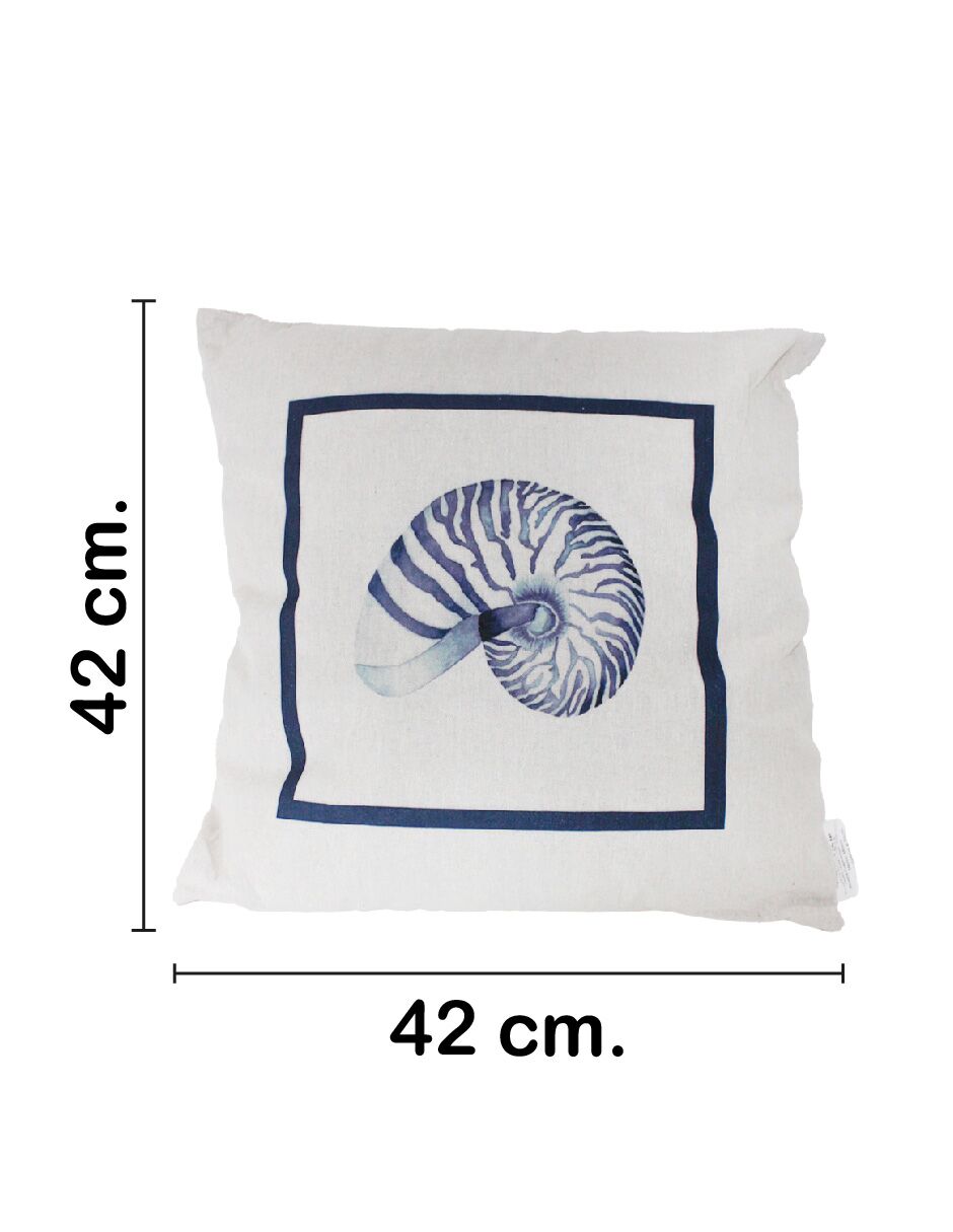 Cojín blanco estampado caracol de mar de 42x10x42cm