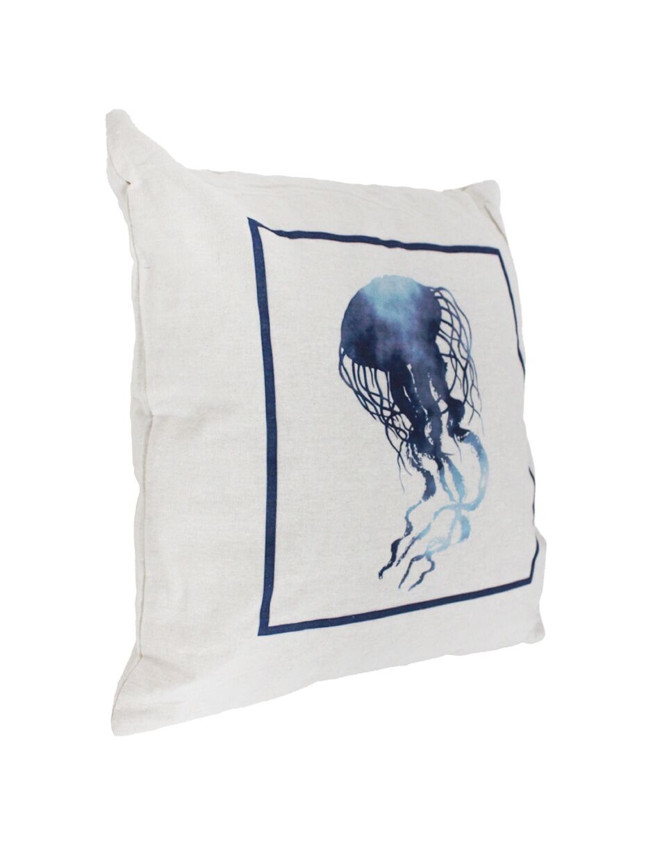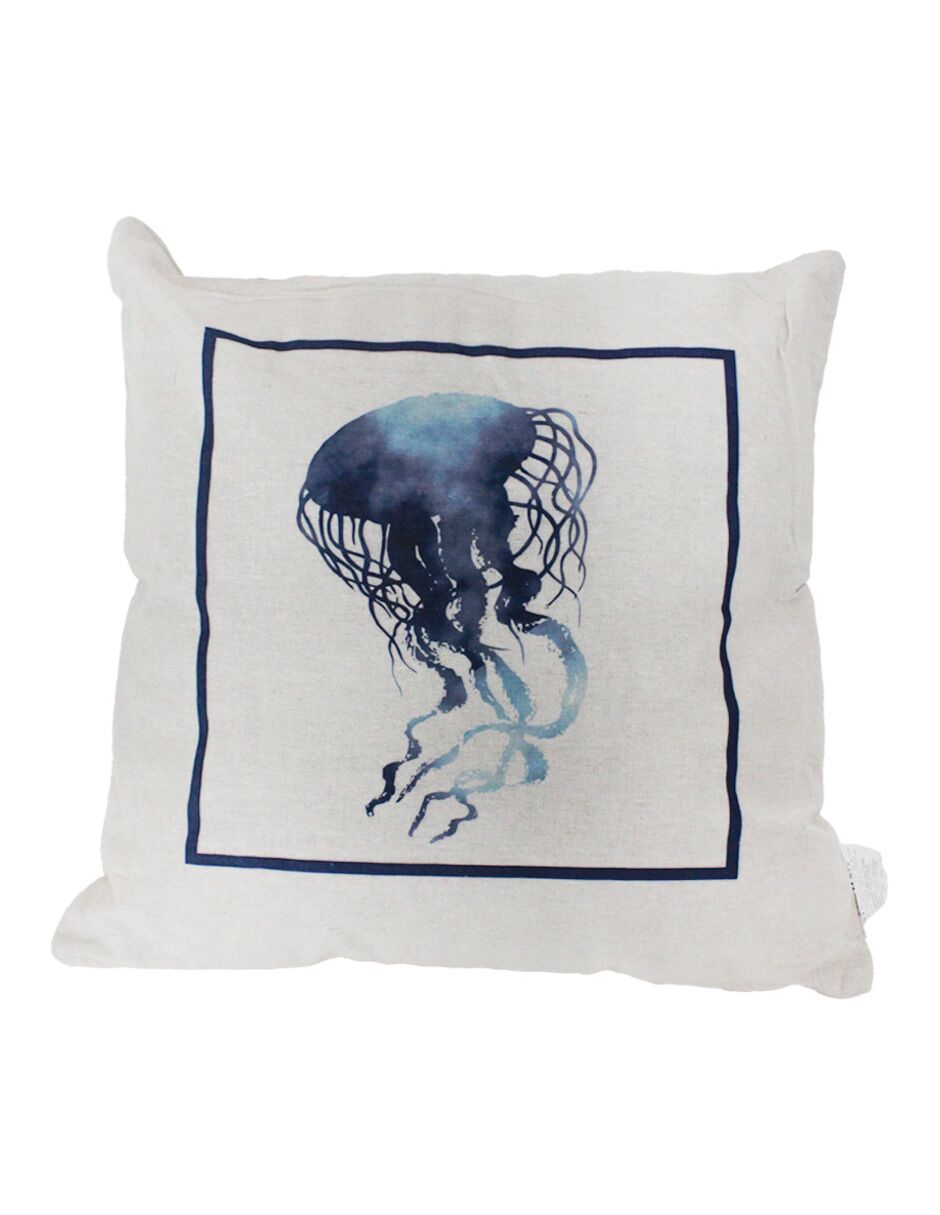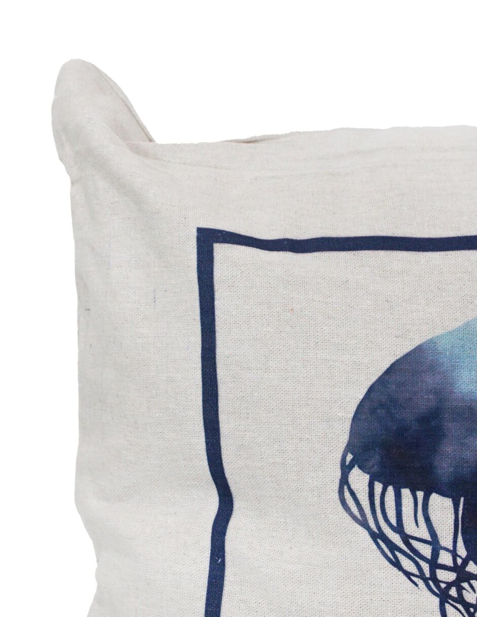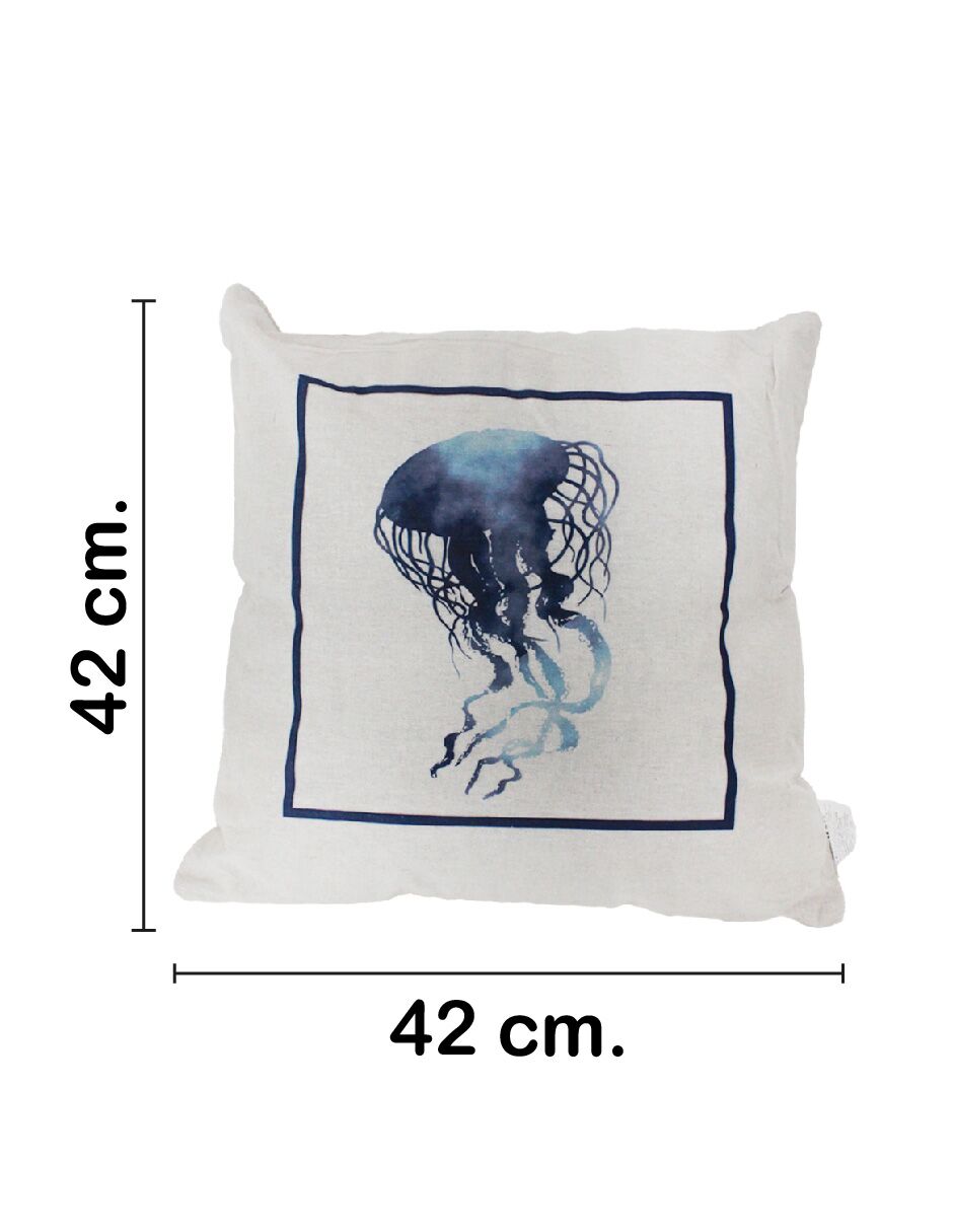 Cojín blanco estampado medusa azul de 42x10x42cm