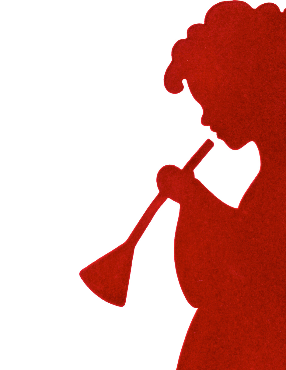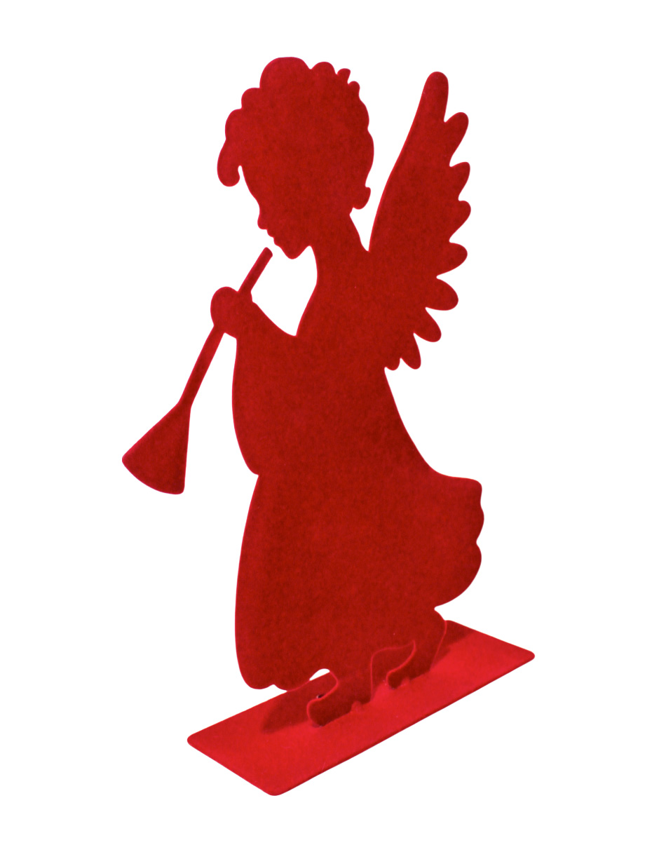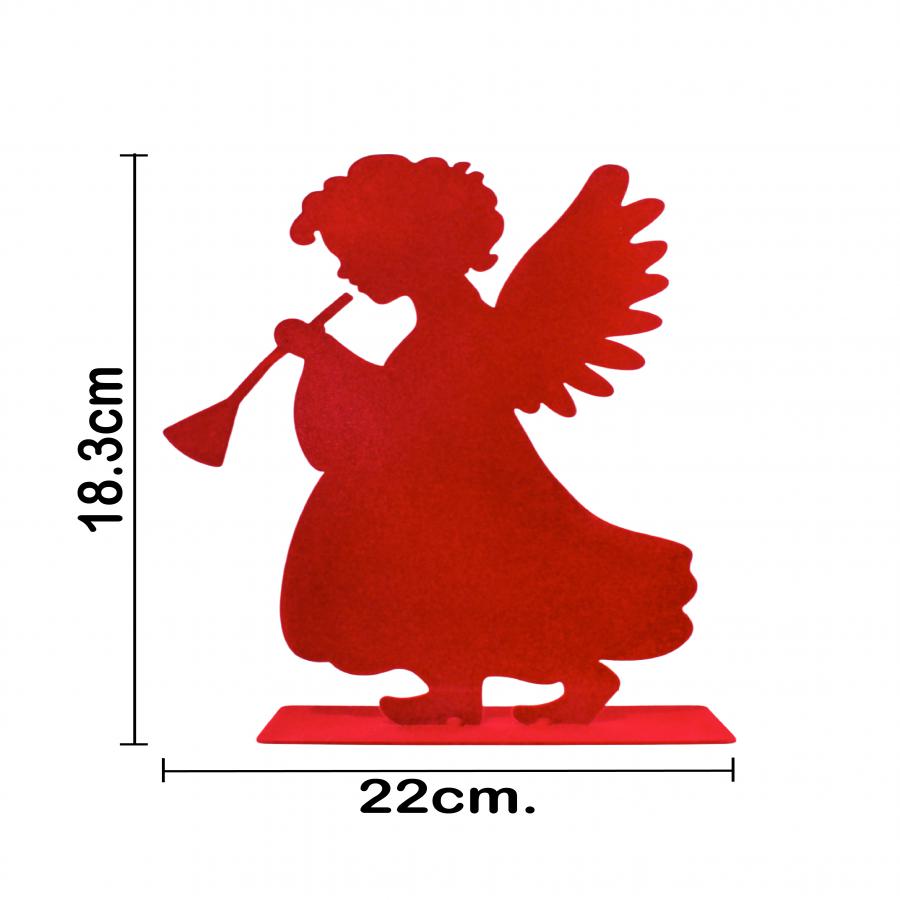 Ángel de metal floquedo con trompeta rojo de 20x6x28cm