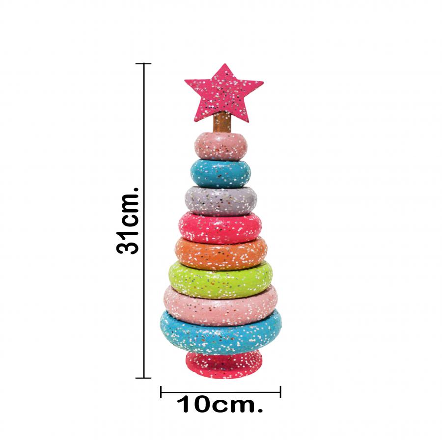 Árbol Aros Color Pastel con Base y Estrella Rosa