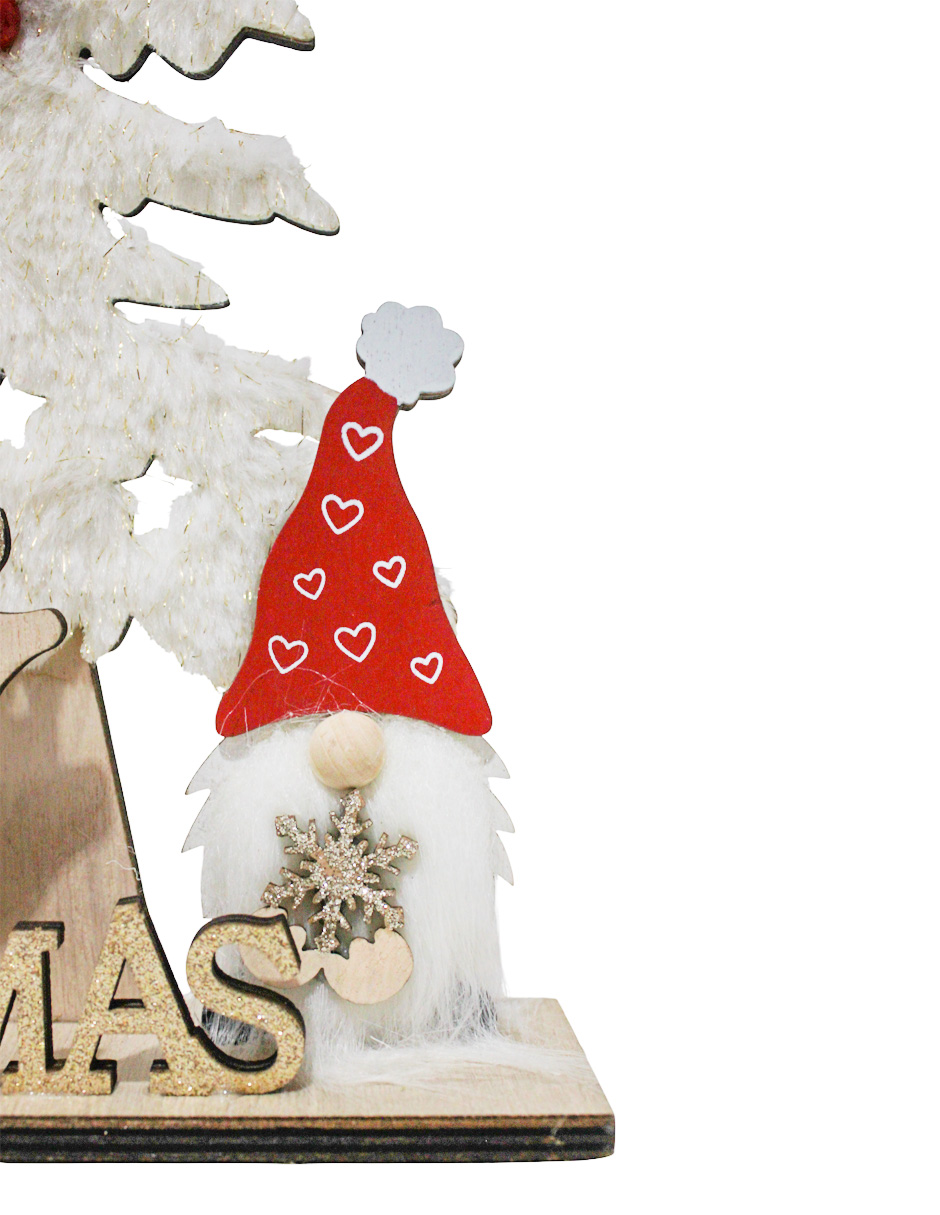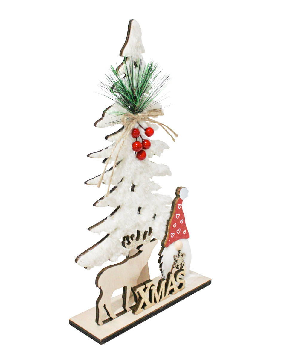 Un encantador árbol de madera blanca con un gnomo y ciervo, con medidas de 17.5x5x30 cm. Ideal para añadir un toque de fantasía y dulzura.