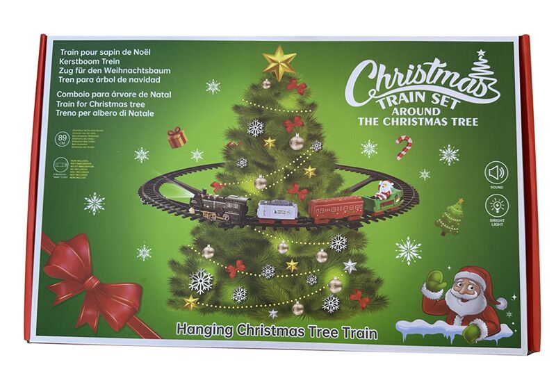 Árbol de mesa con un tren eléctrico que circula a su alrededor. Es una pieza animada que crea un ambiente festivo con movimiento. Fabricado en plástico y metal. Sus medidas son 28 x 44.5 x 7.5 cm.