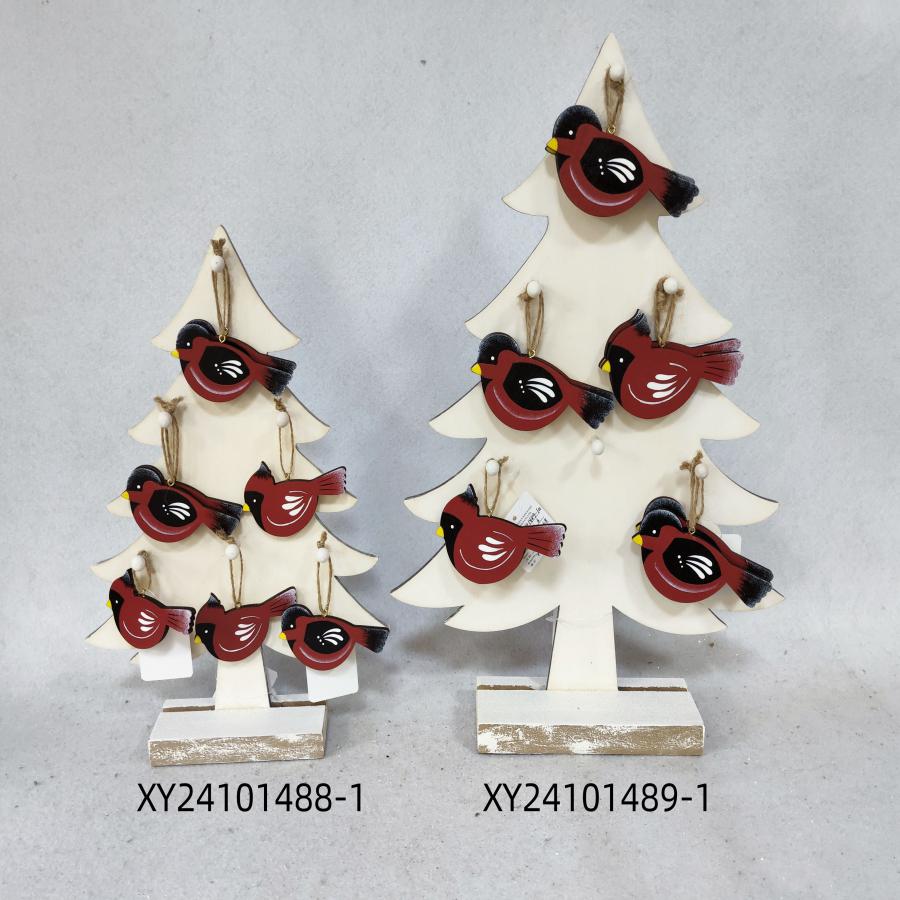 Un festivo árbol de madera con una caja y 24 cascabeles rojos y blancos, con medidas de 14.5×22.5×41.5 cm. Ideal para añadir un toque de tradición y alegría a tu decoración.