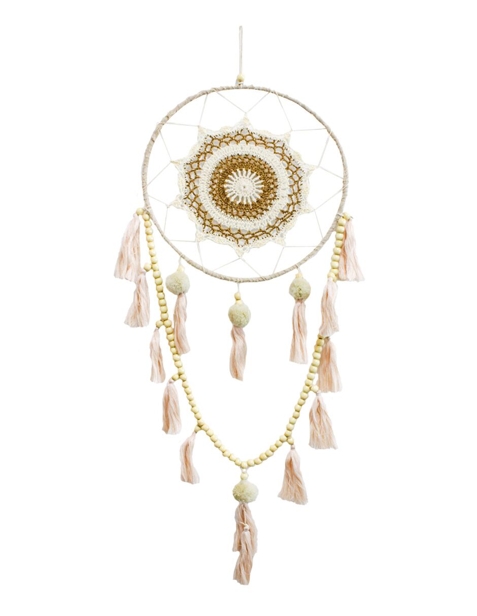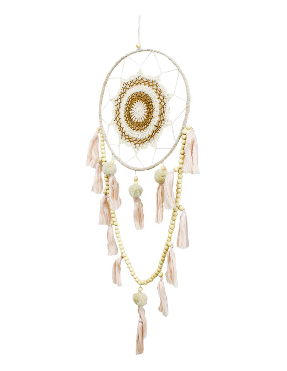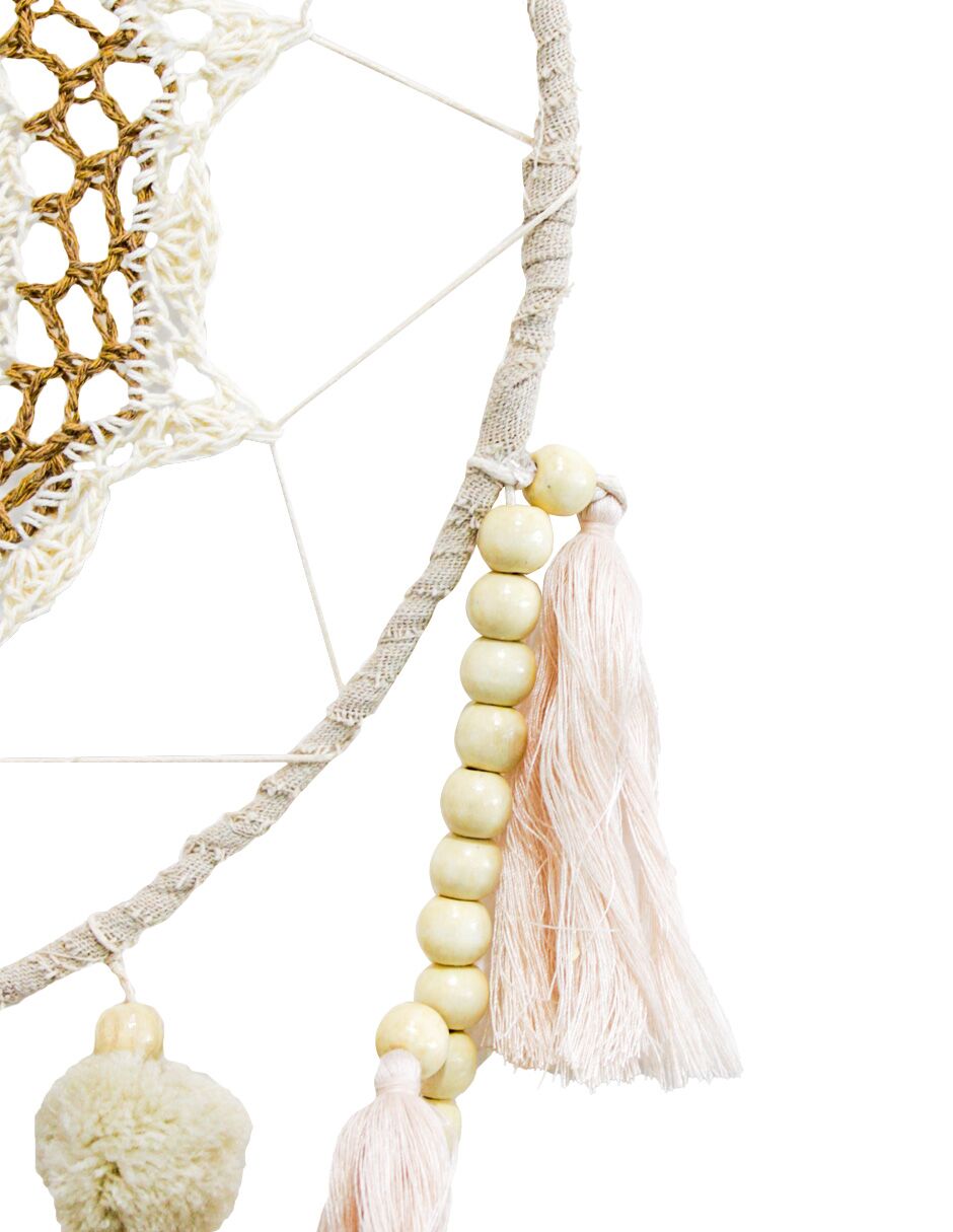 Atrapasueños de macrame con pompón y perlas de 71x34x2cm