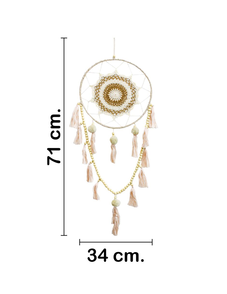 Atrapasueños con borlas y cuentas de madera de 71x34x2cm