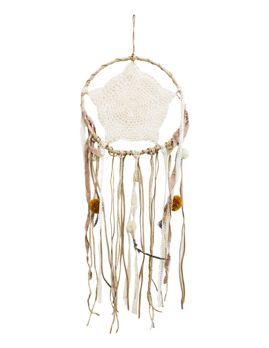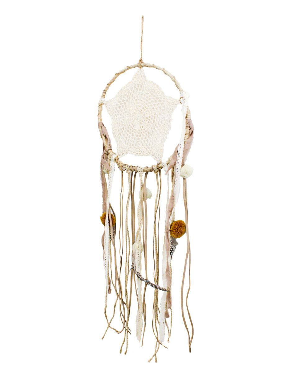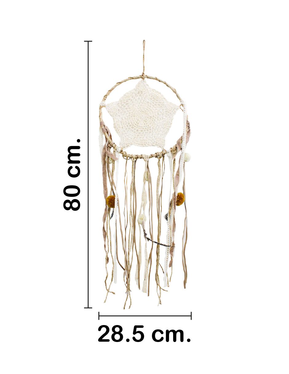 Atrapasueños de macrame con pompones y tiras de 80×28.5x3cm
