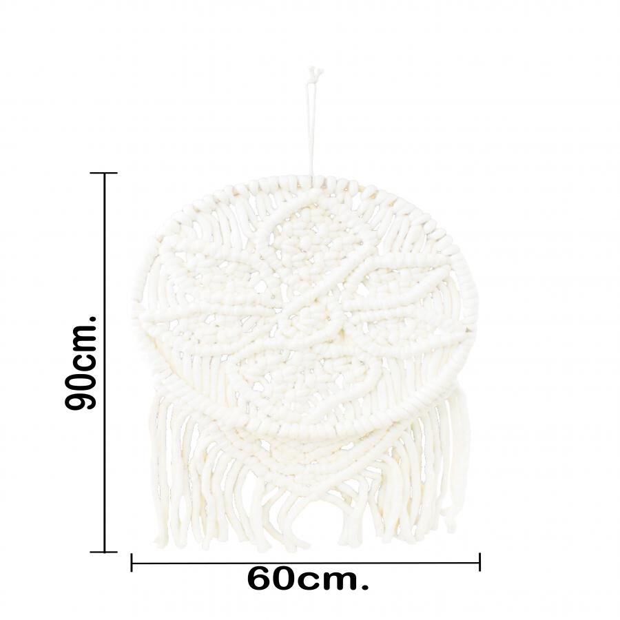 Además, el tejido de lana trenzada y el diseño artesanal le confieren una textura suave y orgánica, perfecta para complementar un estilo Boho o Natural. Su gran tamaño (60 x 90 cm) lo convierte en una impresionante pieza central sobre la cabecera de la cama o en cualquier muro que necesite un punto focal de calma. Por lo tanto, es ideal para quienes buscan una protección energética nocturna o desean una solución lujosa de decoración que promueva el descanso reparador y la paz interior.