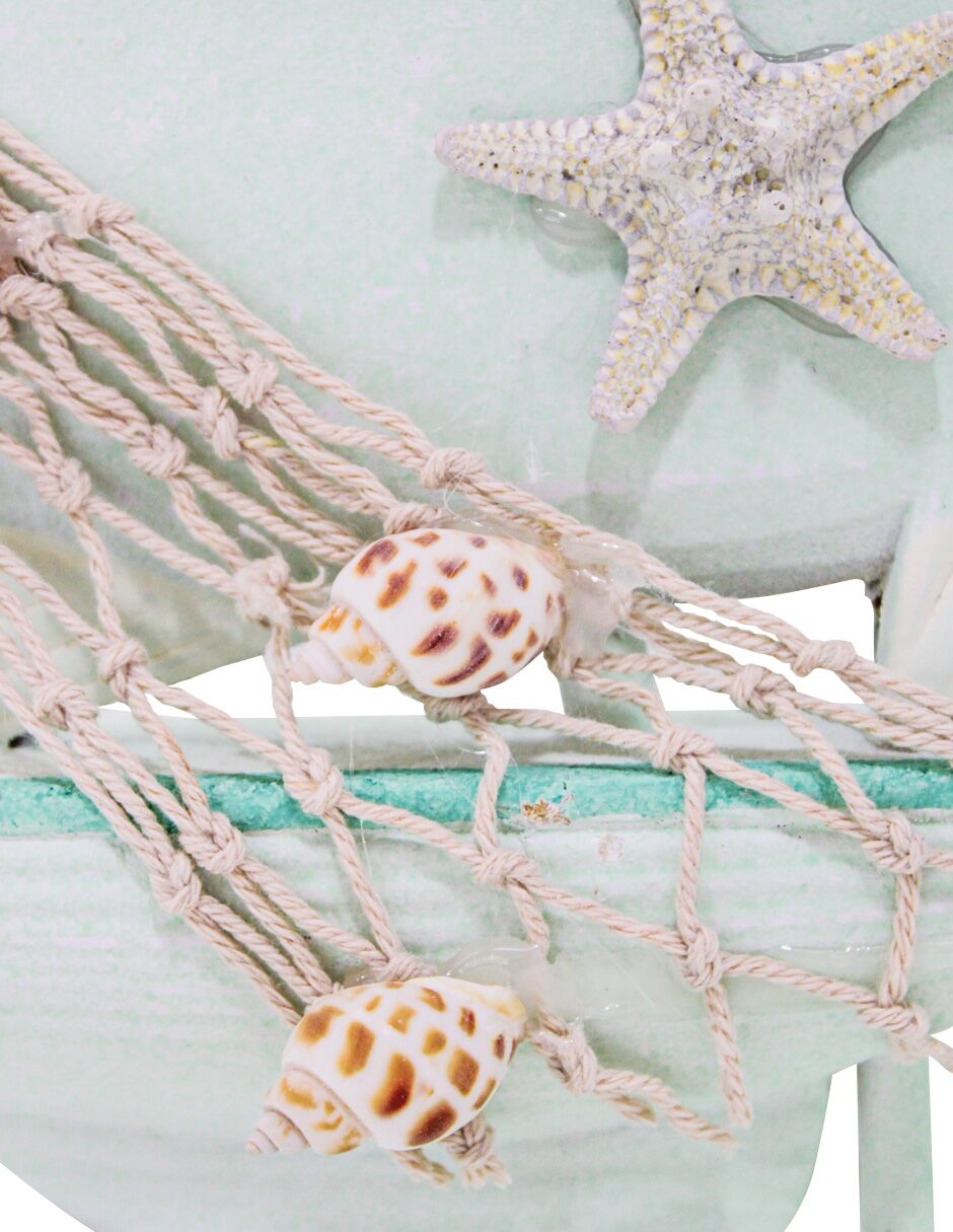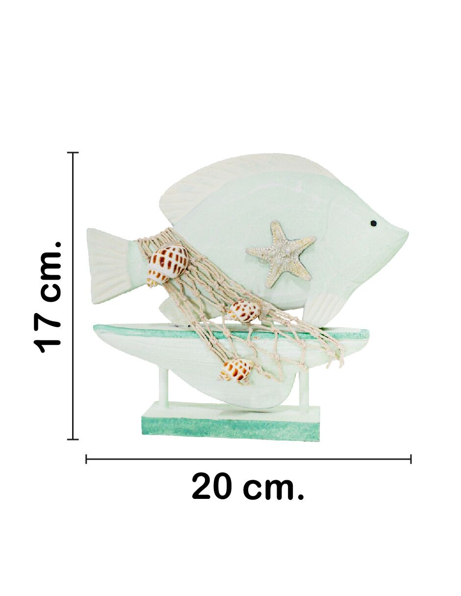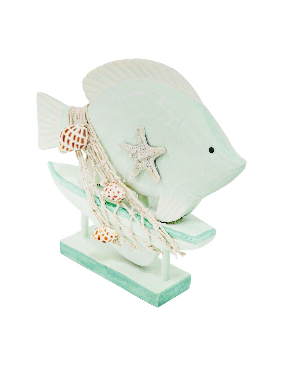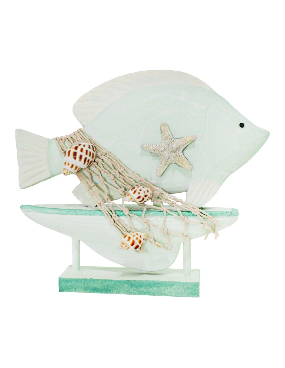 Barco con pez de madera verde de 20x4x17cm
