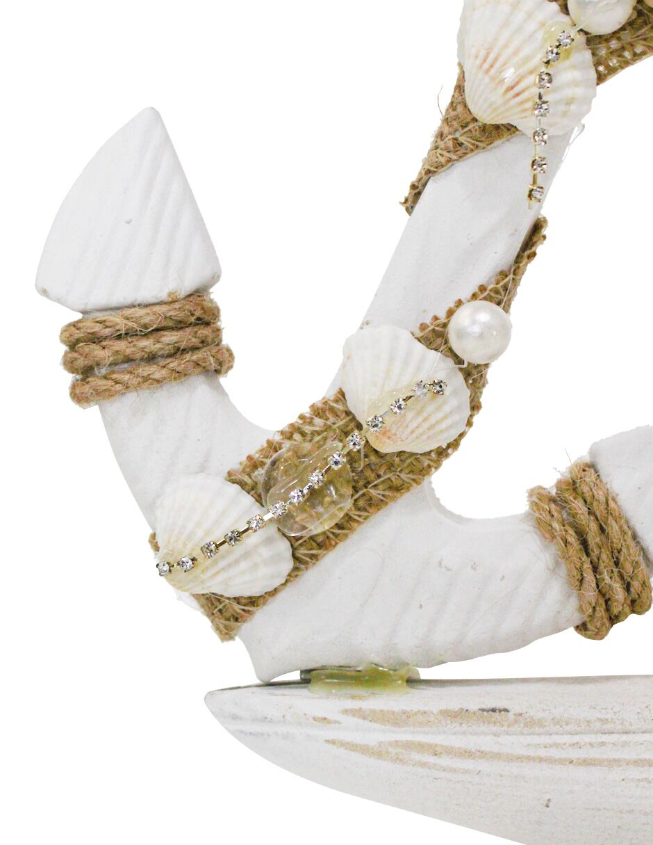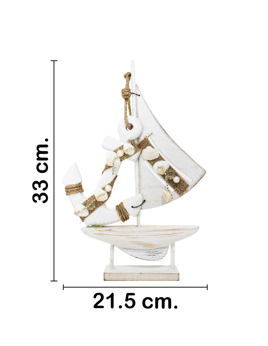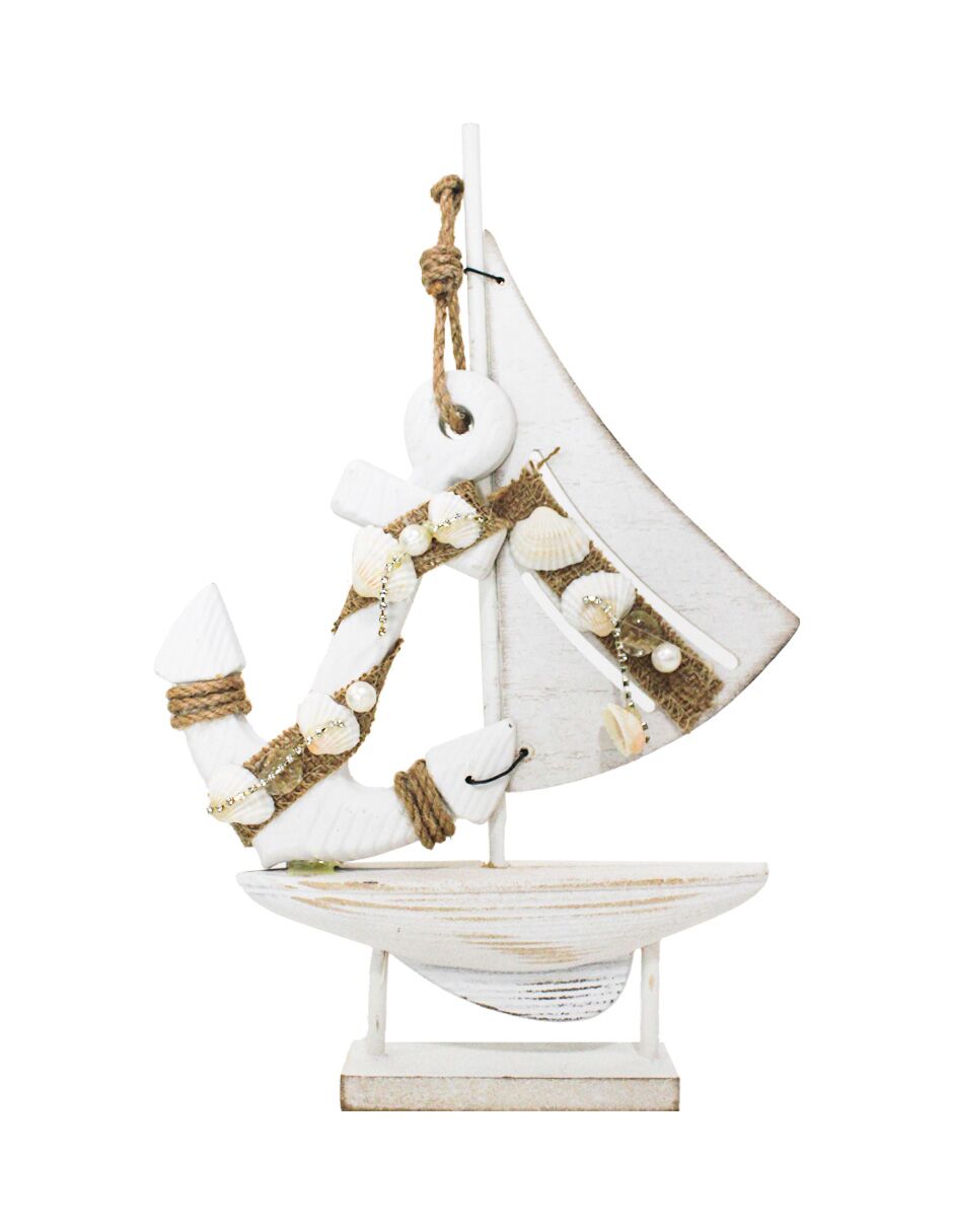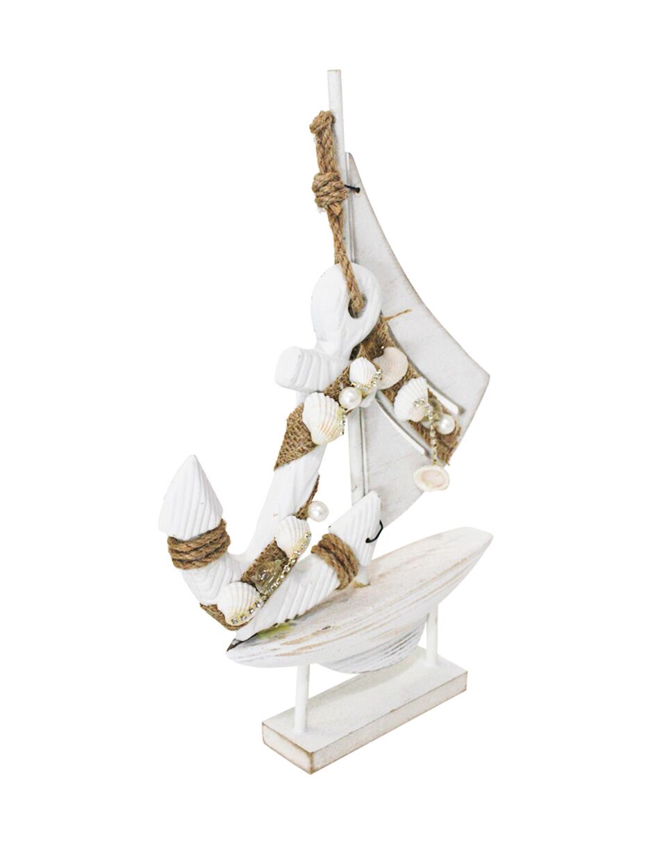 Barco de madera con ancla y conchas marinas blanco de 21.5x4x33cm