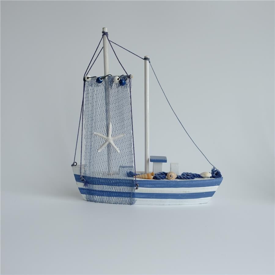 Barco marino azul con blanco y estrella marina de 25×5.5x27cm