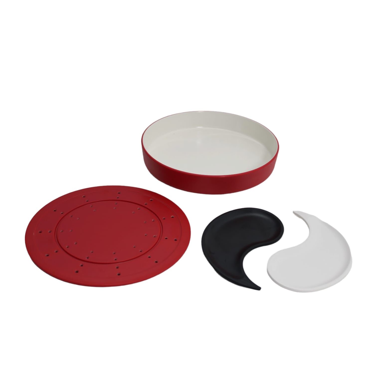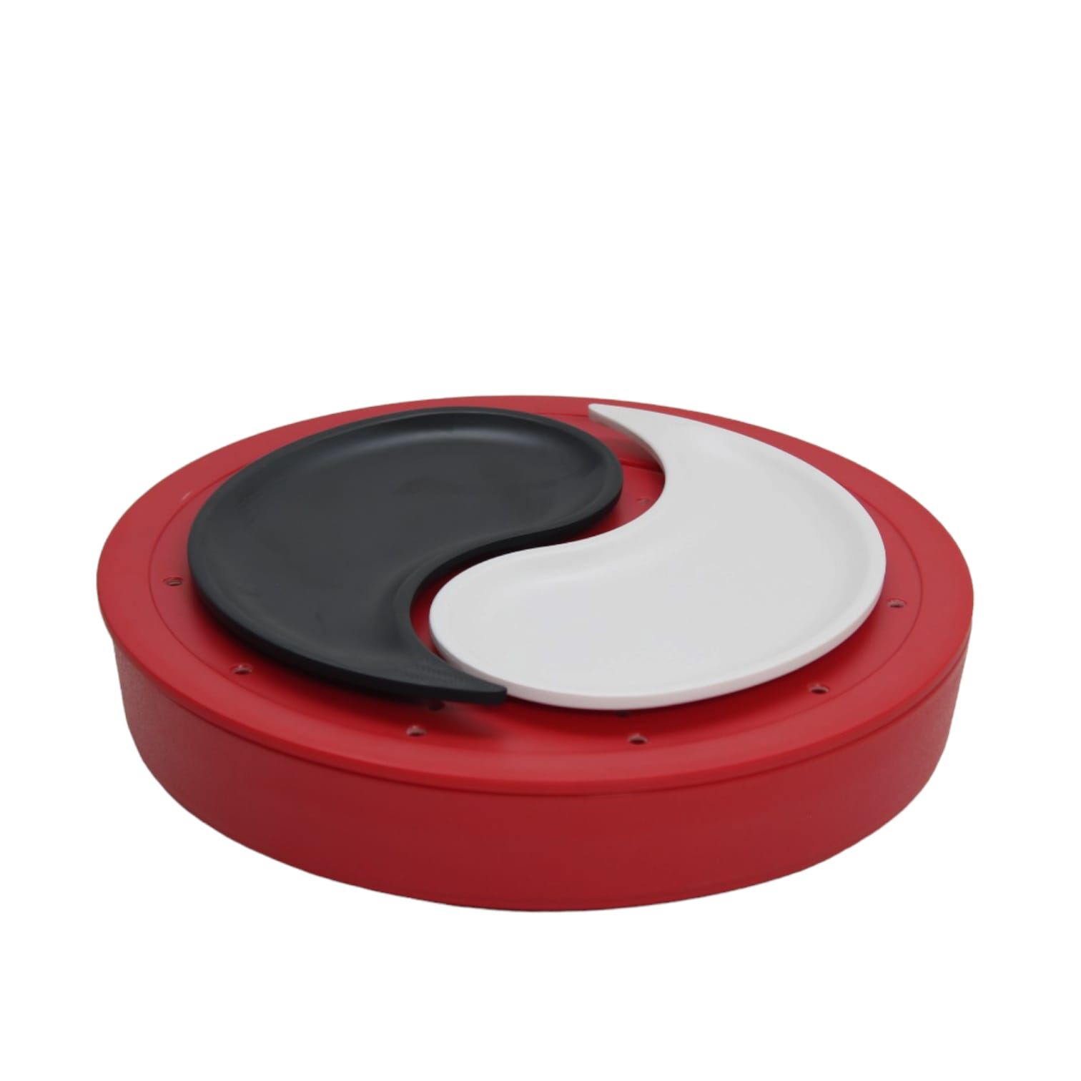 Esta Base “Yin Yang” para Sushi es la pieza central perfecta para cualquier cena oriental. La base redonda de melamina, de un vibrante color rojo, sostiene un par de platos en forma de yin y yang en blanco y negro. Con unas dimensiones de 25.2×25.2x8cm, su diseño circular permite que todos los comensales accedan fácilmente a una variedad de platillos.