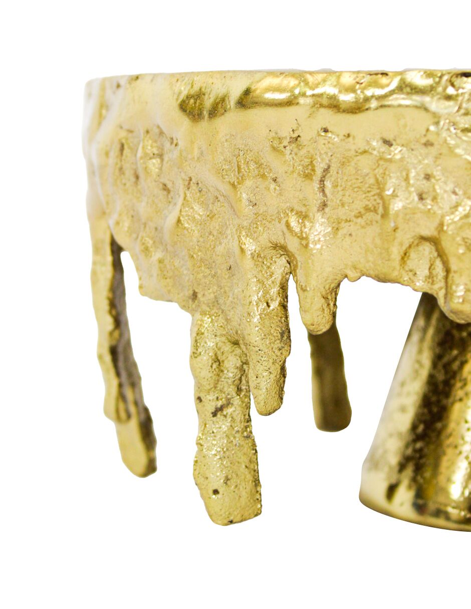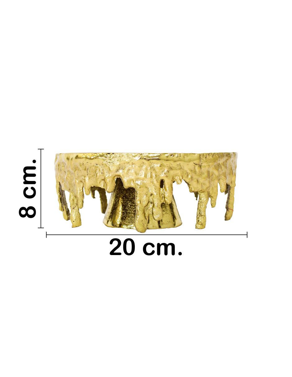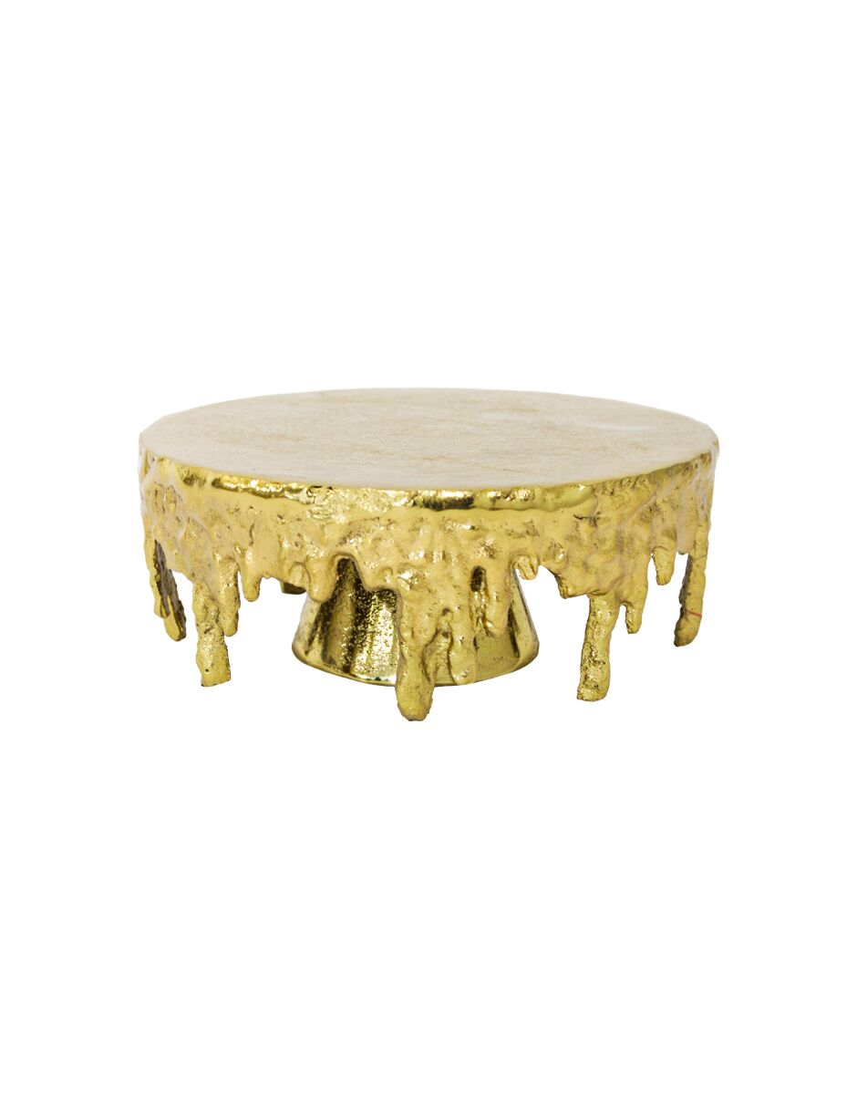 Base de exhibición para pasteles y postres de tamaño mediano. Fabricada en metal con un acabado dorado brillante de alta calidad. El diseño goteo es ideal para crear diferentes niveles de presentación en la mesa. El material es metal. Medidas: 25 x 25 x 9 cm.