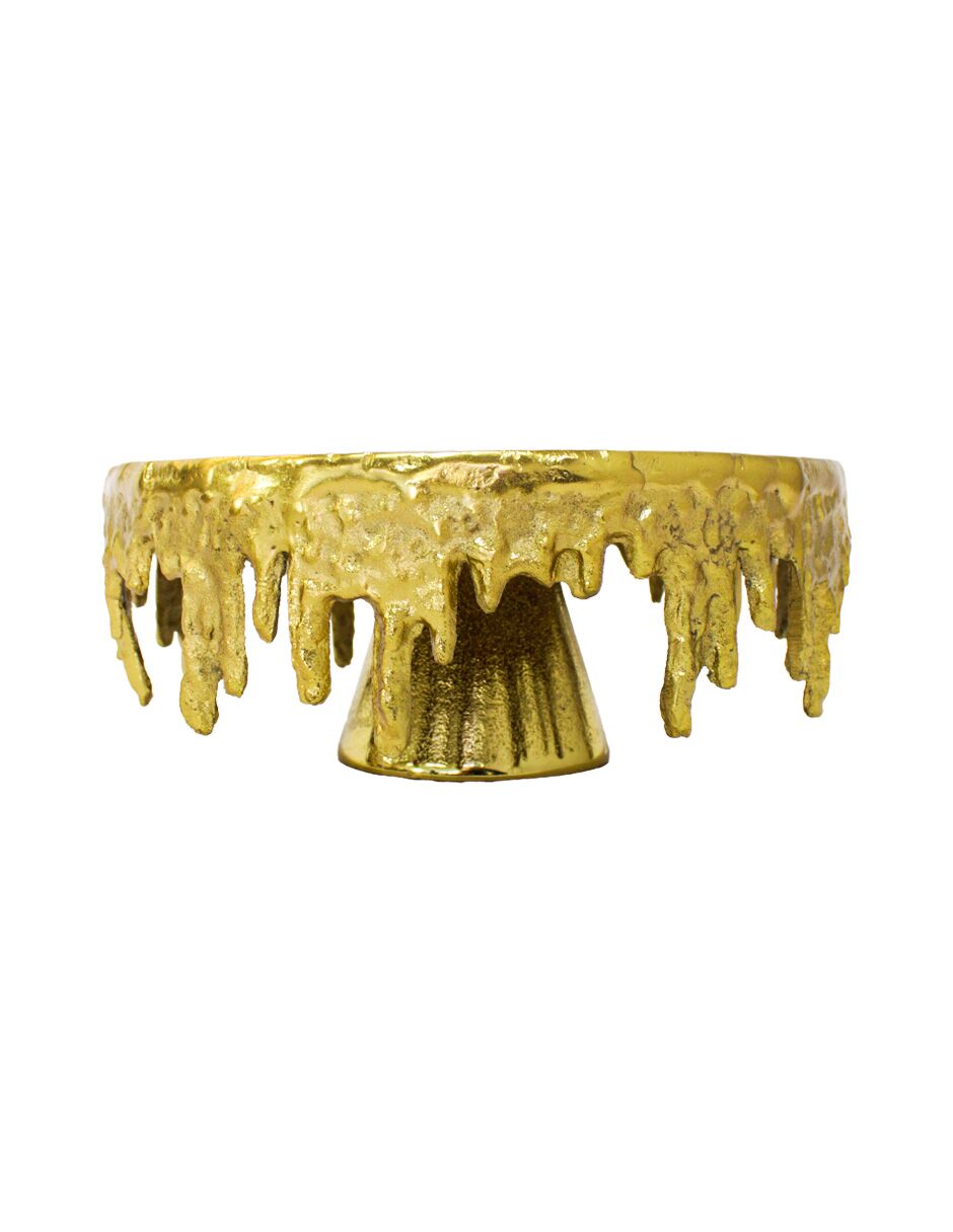 Base de exhibición para pasteles y postres de tamaño mediano. Fabricada en metal con un acabado dorado brillante de alta calidad. El diseño goteo es ideal para crear diferentes niveles de presentación en la mesa. El material es metal. Medidas: 25 x 25 x 9 cm.